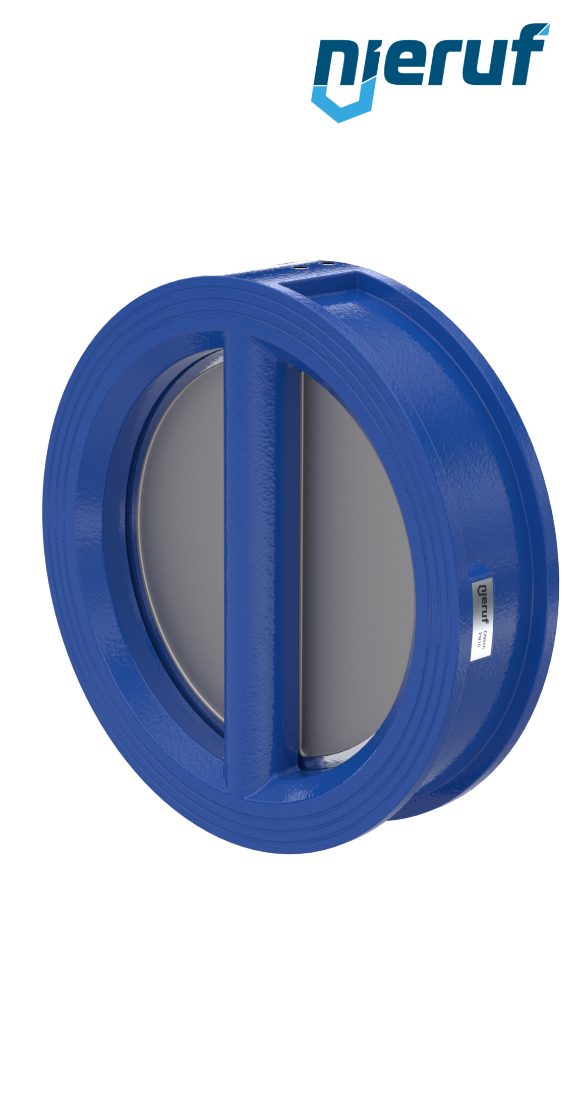 Doppelflügel-Rückschlagklappe DN600 Dichtung FKM (Viton) PN 10 DIN EN 1092-1 Form B, Gehäuse aus GGG40 epoxid-beschichtet blau 180µm