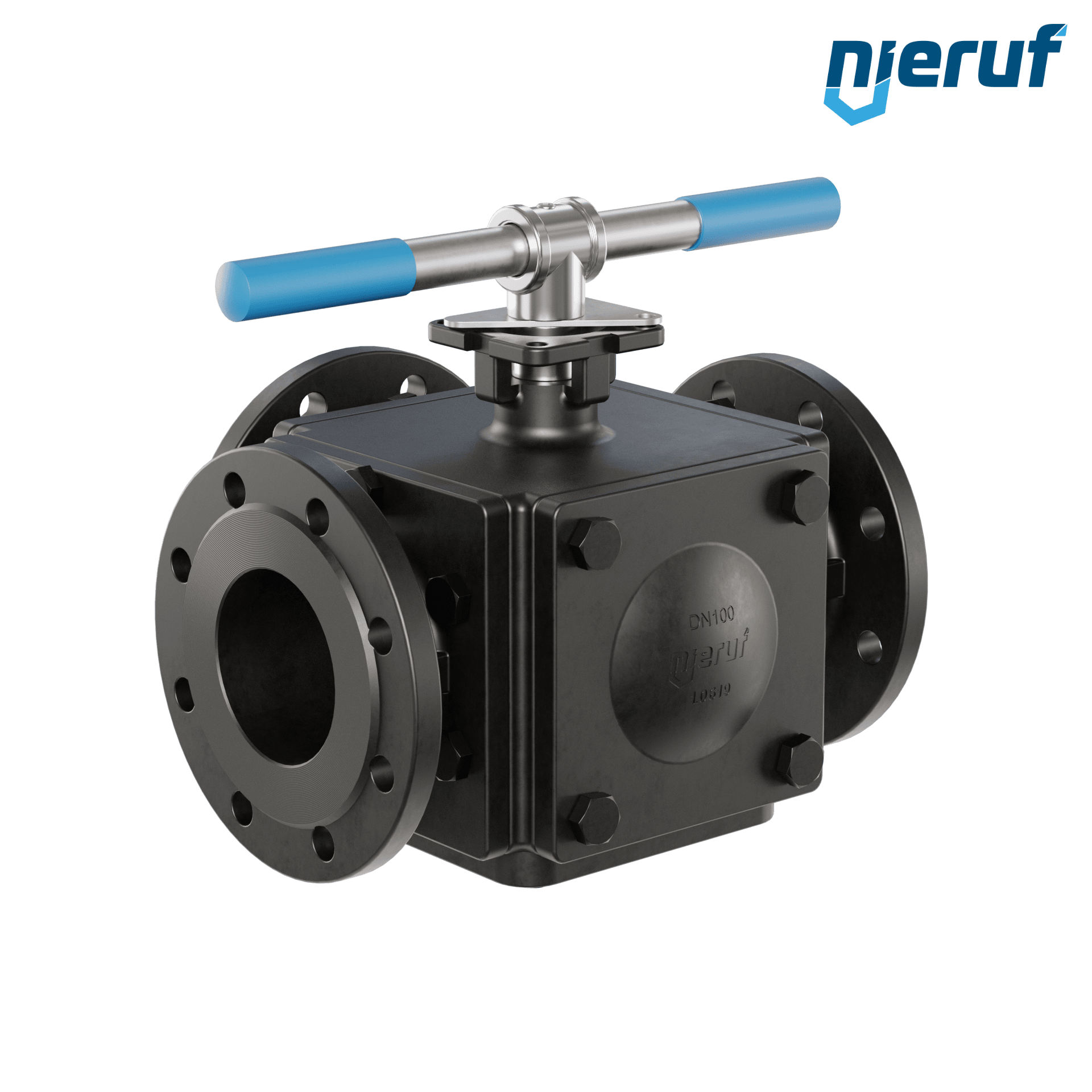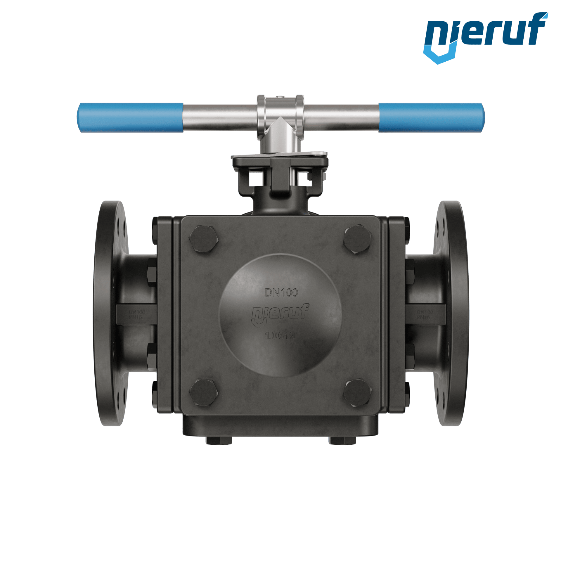 Dreiwege-Flanschkugelhahn DN100 PN16 FK08 Gehäuse Stahlguss 1.0619 Kugel Stahlguss 1.4308 Dichtung TFM 1600 / PTFE L-Bohrung
