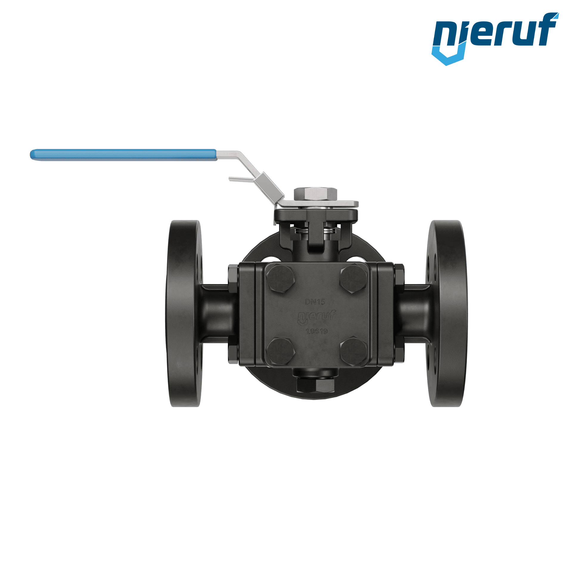 Dreiwege-Flanschkugelhahn DN15 FK08 T-Bohrung Stahlguss 1.0619
