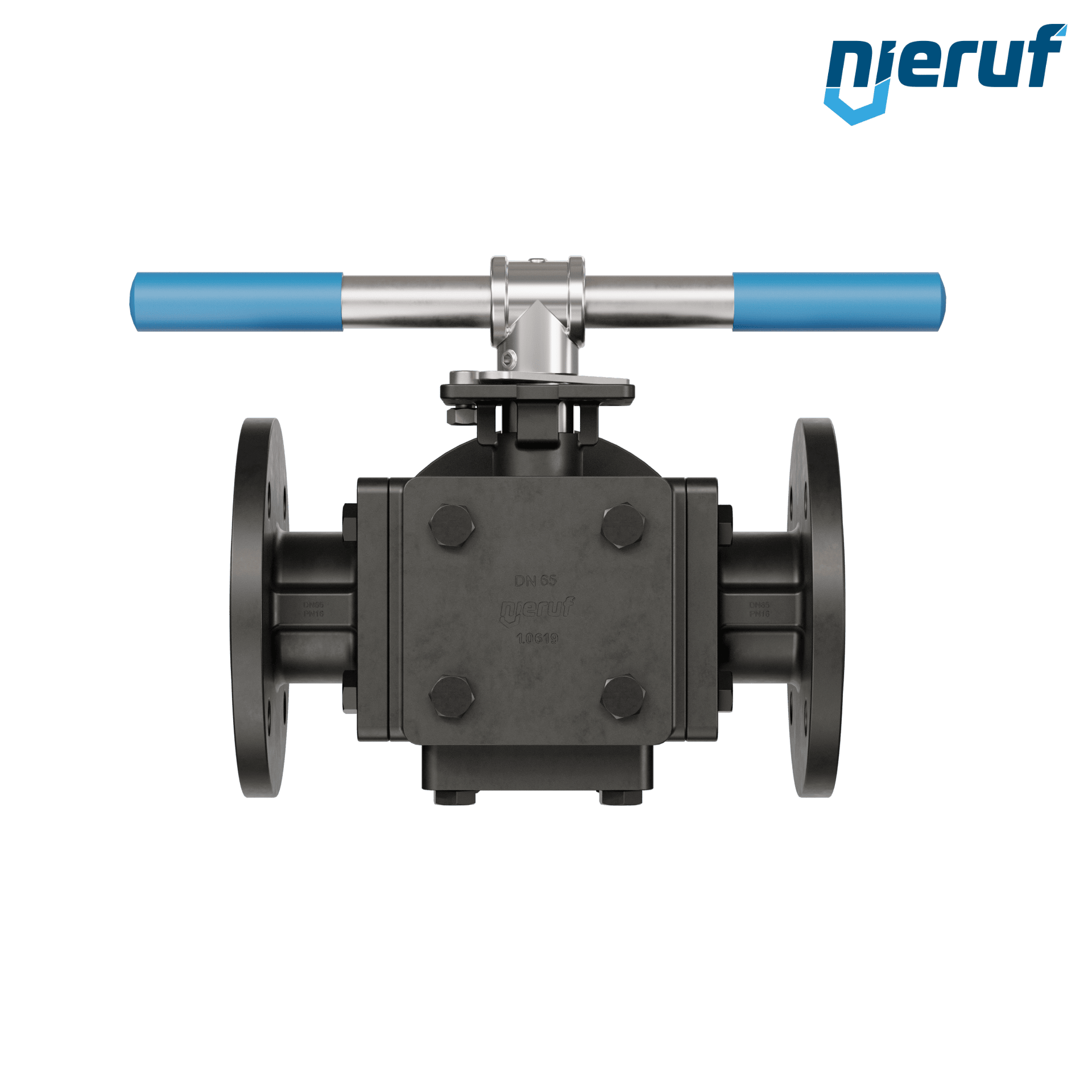 Dreiwege-Flanschkugelhahn DN65 PN16 FK08 Gehäuse Stahlguss 1.0619 Kugel Stahlguss 1.4308 Dichtung TFM 1600 / PTFE T-Bohrung
