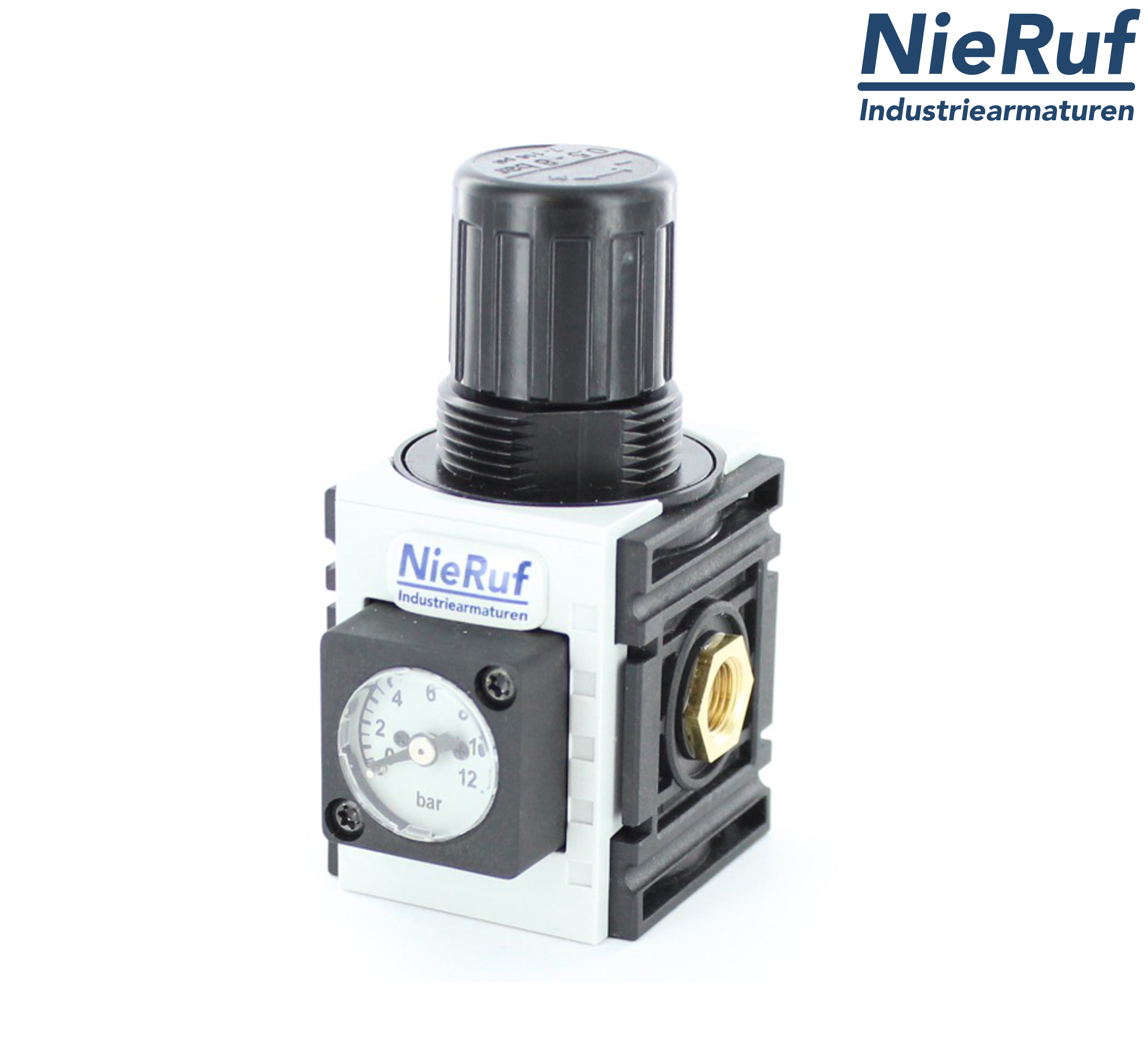 Druckregler 1/4" Zoll aus Kunststoff Polyamid Innengewinde Dichtung NBR für Druckluft, Einstelldruck 0,5 - 8,0 bar