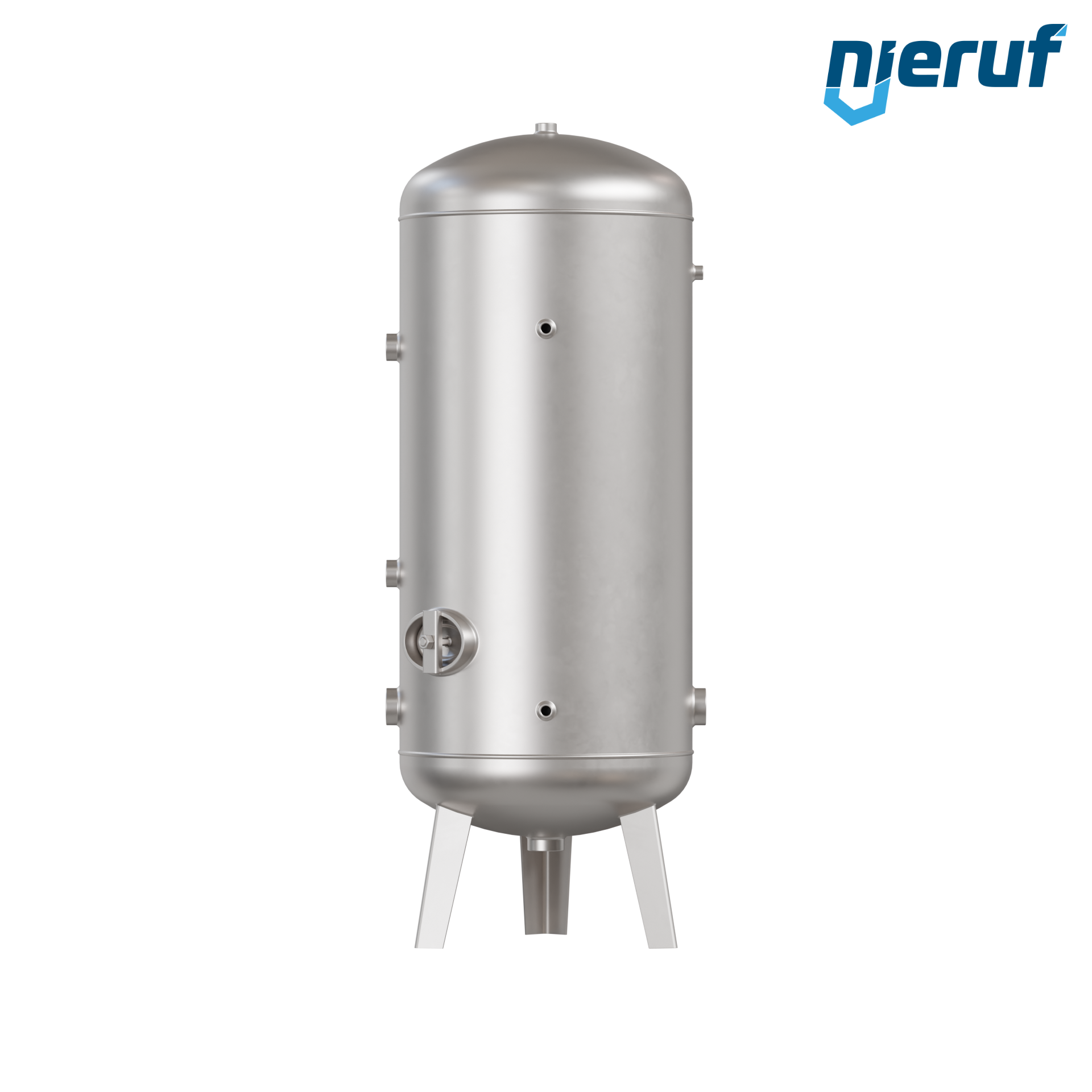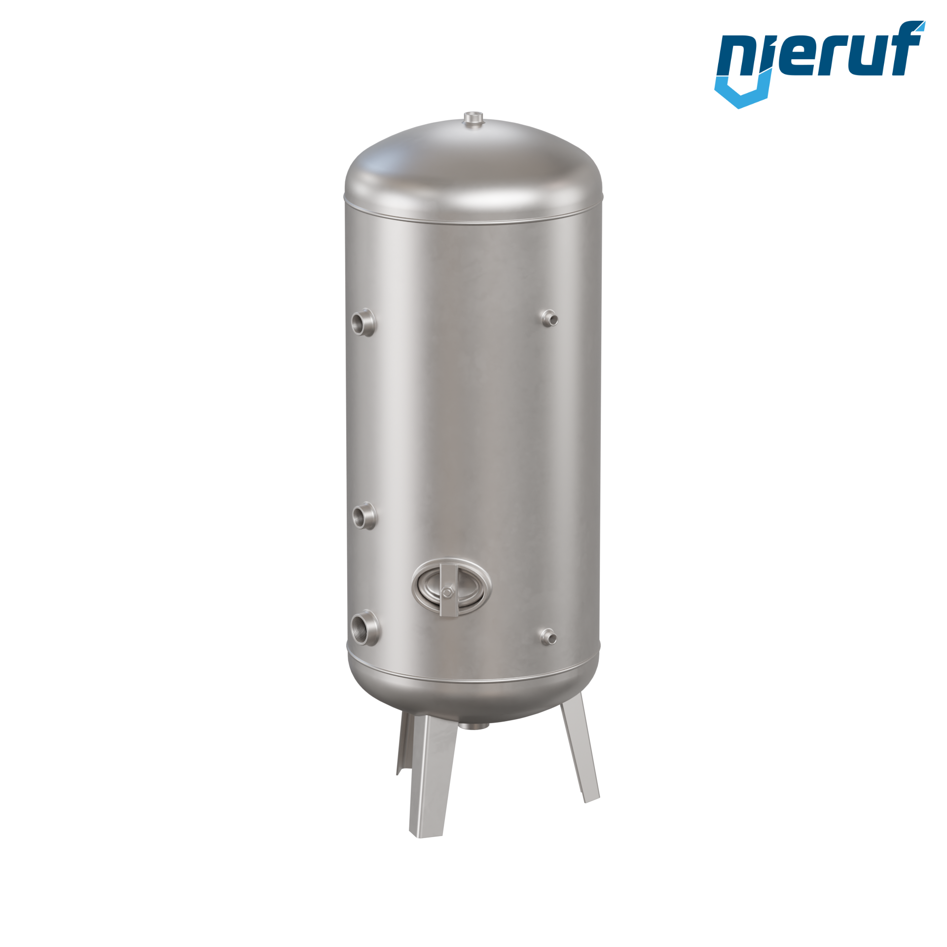Druckwasserbehälter BE04 mit 300 Liter Volumen stehend in Betriebsdruck 0-6 bar aus Edelstahl 1.4571 und Durchmesser 550 mm