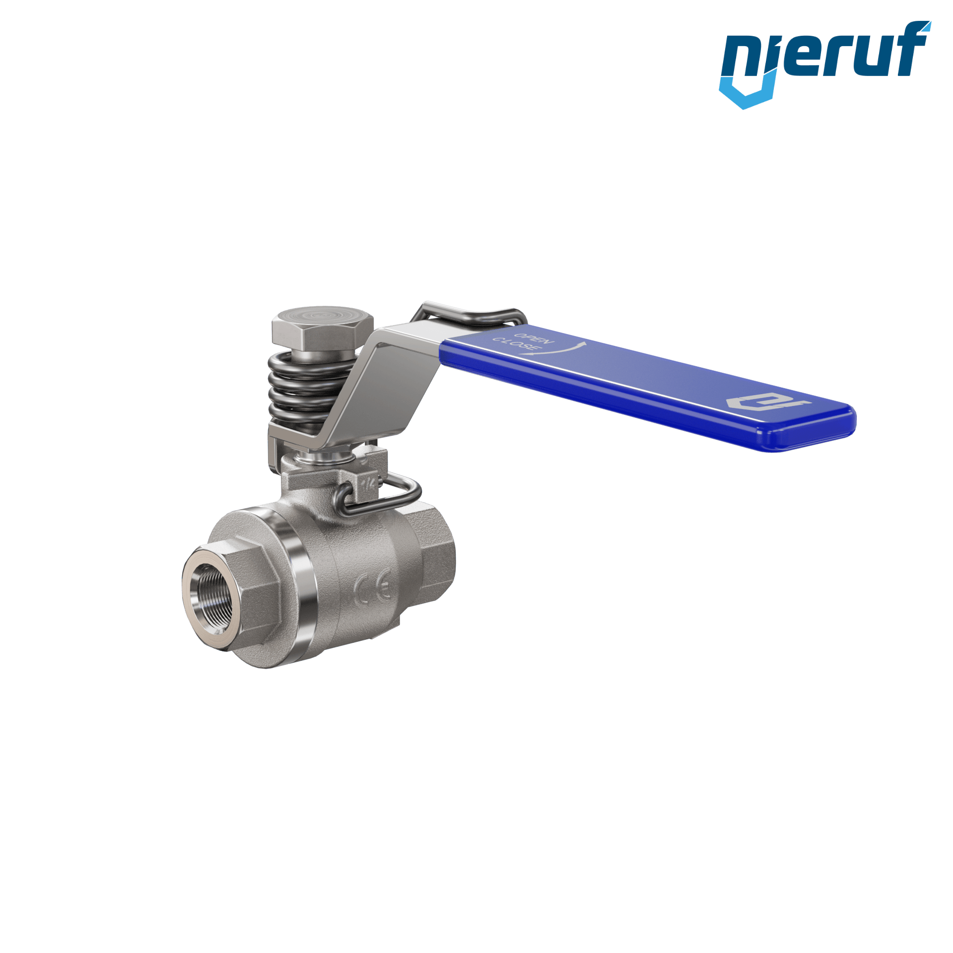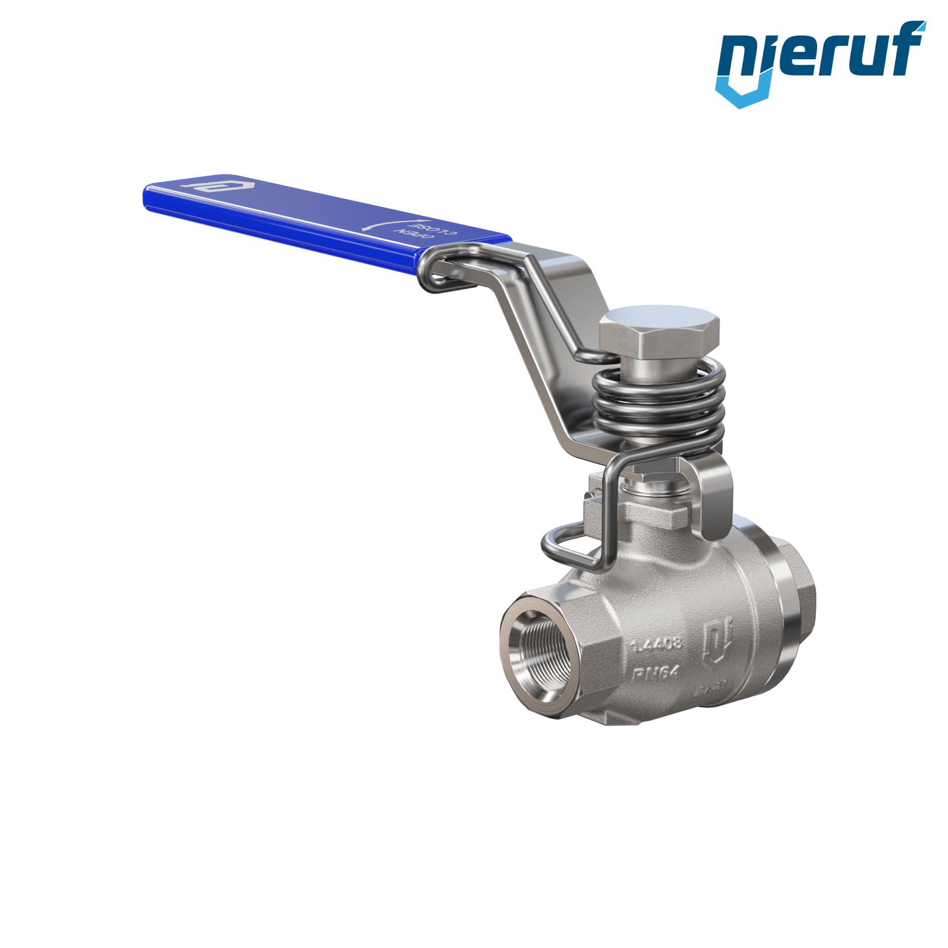 Kugelhahn mit Federrückstellung DN8 - 1/4" Zoll voller Durchgang Dichtungen aus PTFE für flüssige & gasförmige Medien Edelstahl 1.4408