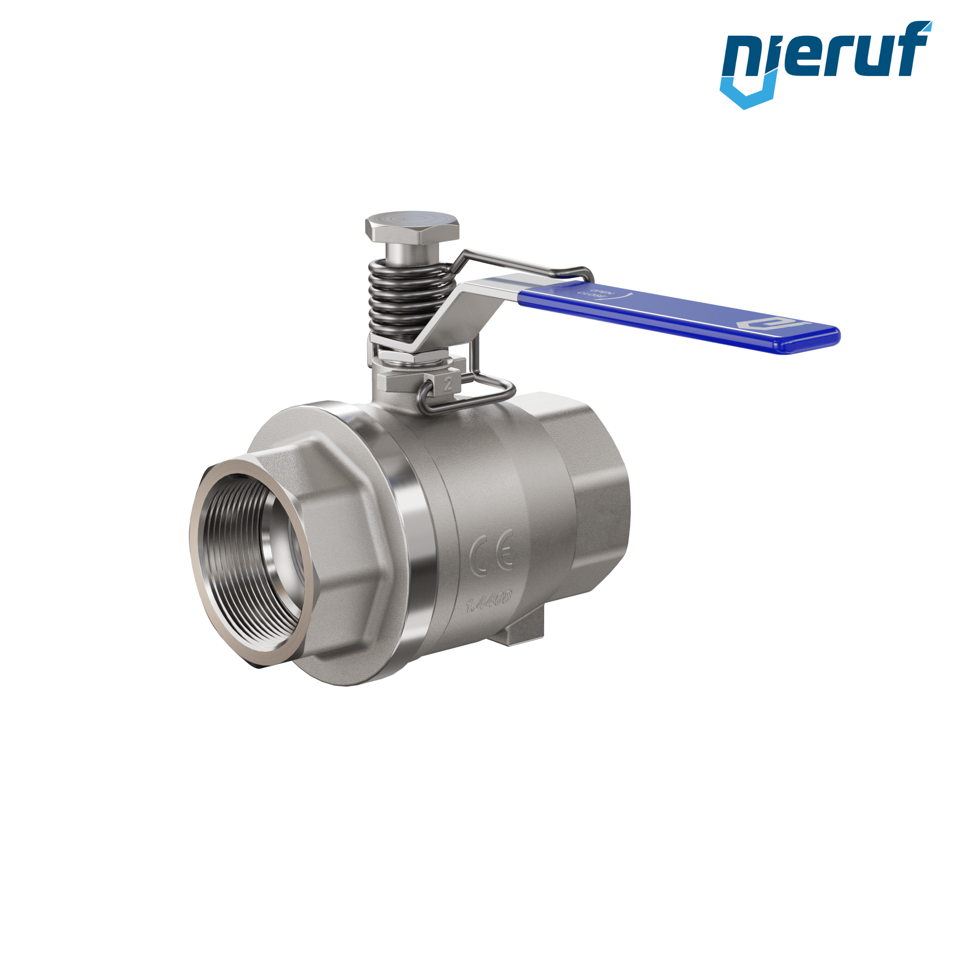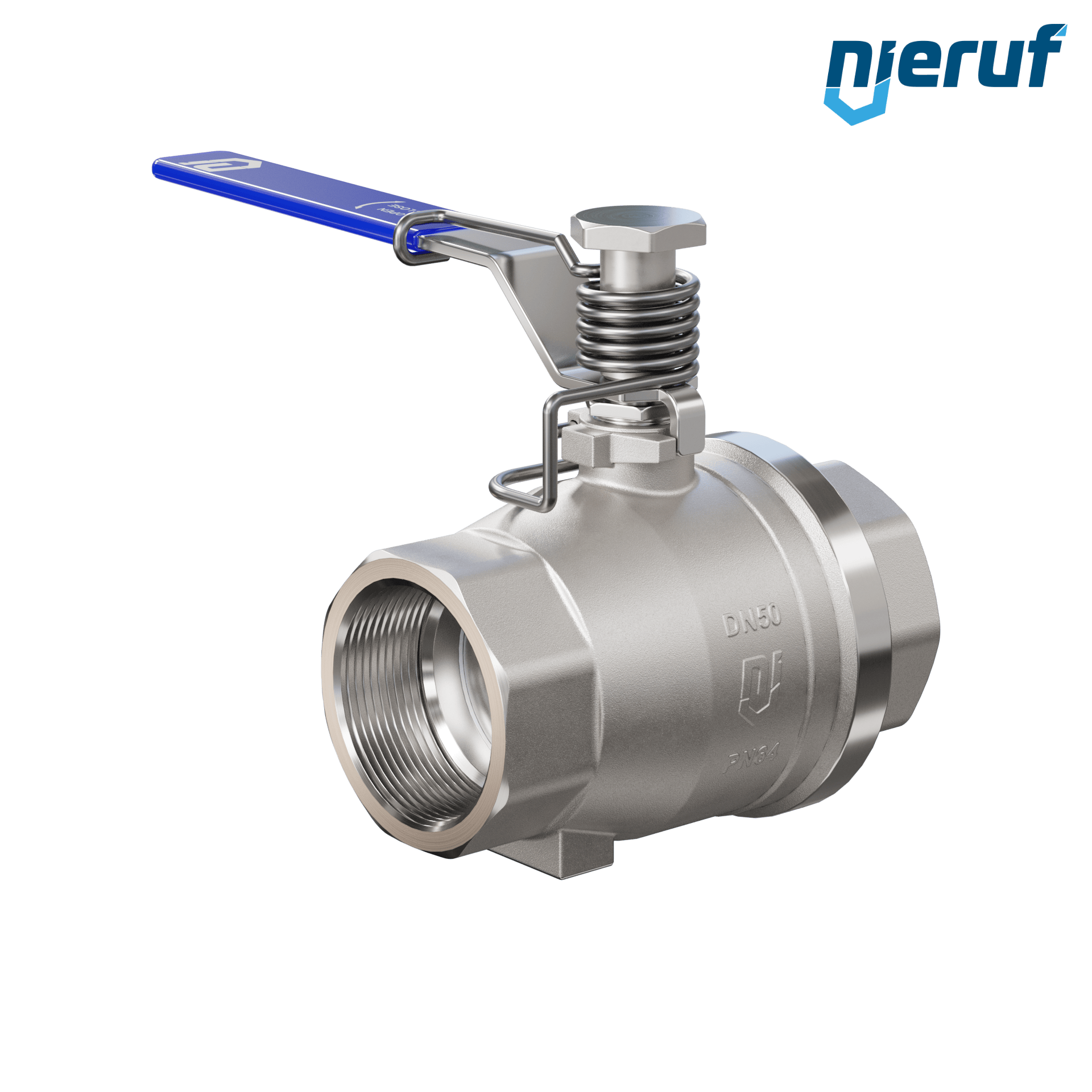 Kugelhahn mit Federrückstellung DN50 - 2" Zoll voller Durchgang Dichtungen aus PTFE für flüssige & gasförmige Medien Edelstahl 1.4408