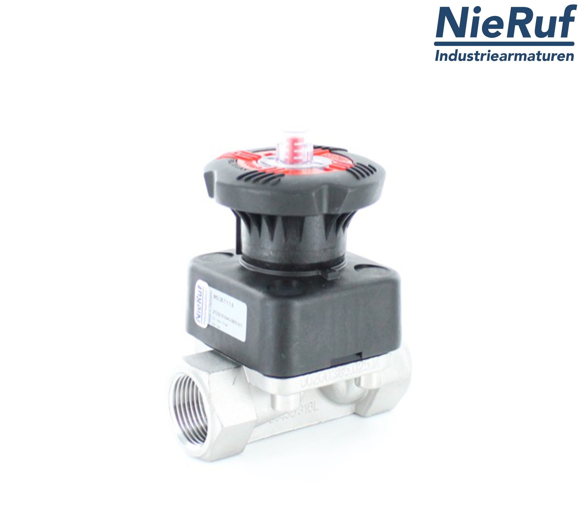 Edelstahl-Membranventil Innengewinde 1 1/4 Zoll Membrane aus EPDM Handrad aus PP-GR Druckbereich: PN10 KVs-Wert: - m3/h Wartungsfreies Handrad