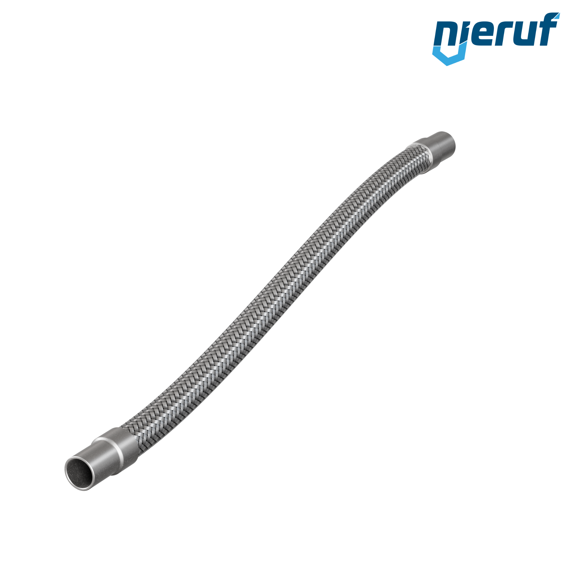 Edelstahlwellschlauch mit Anschweißende beiderseits Ø 26,9 mm und Einfachumflechtung in Nennweite DN20 - 26.9 mm mit 500 mm Länge und 40 bar max. Betriebsdruck