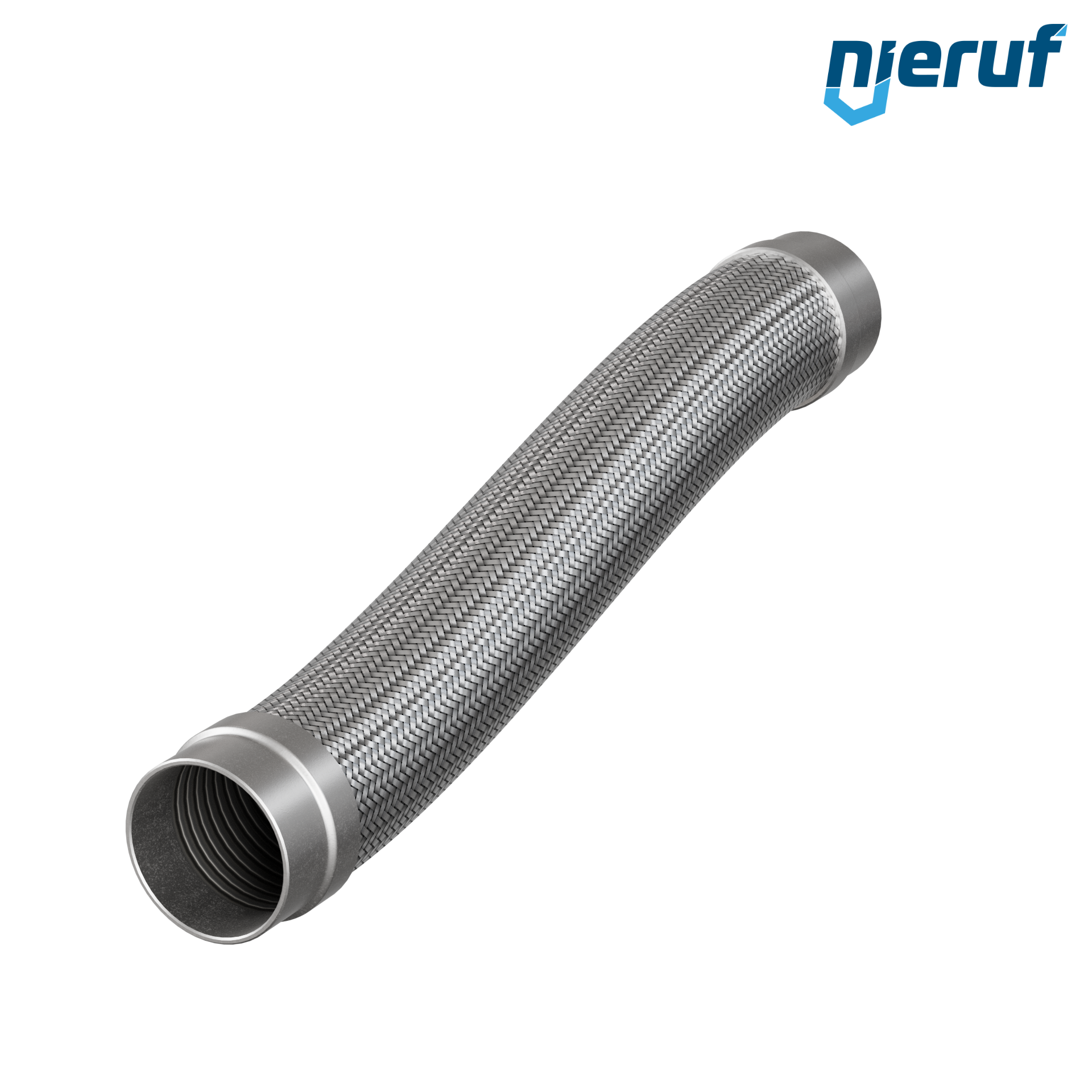 Edelstahlwellschlauch ES01 DN80 - 88.9 mm mit Einfachumflechtung und Anschweißenden Länge 1000 mm