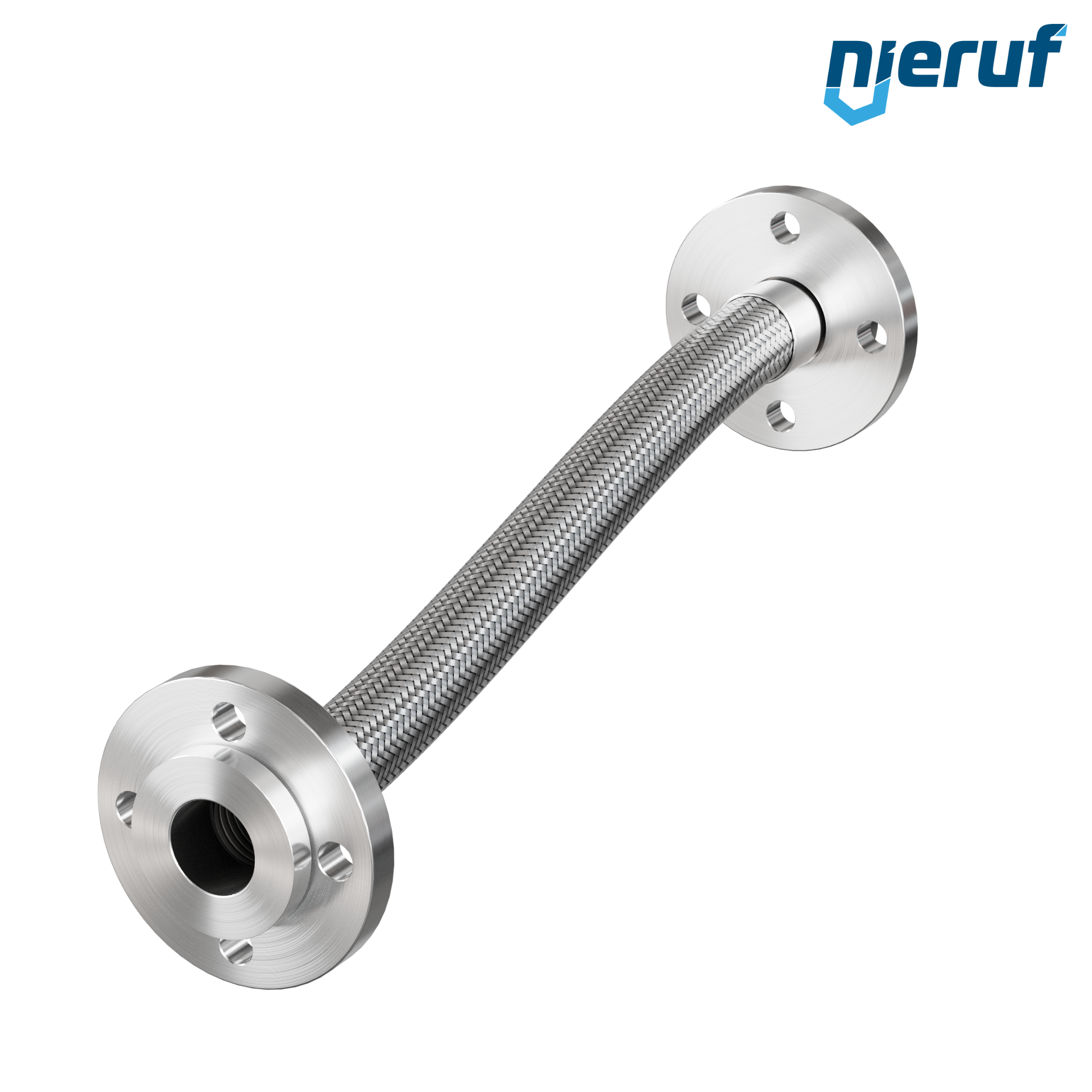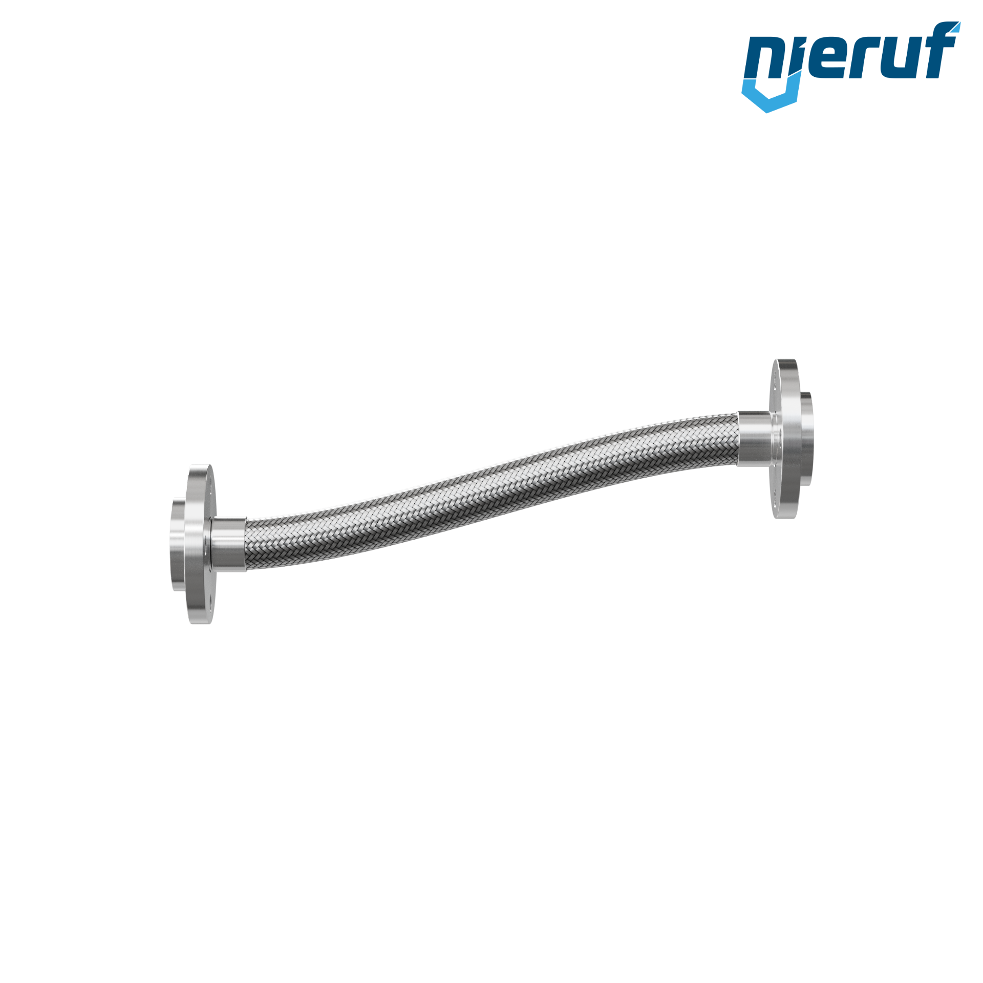 Edelstahlwellschlauch mit Losflansch beiderseits EN 1092-01 Typ 02 PN 40 mit Bund und Einfachumflechtung in Nennweite DN40 - 1 1/2" Zoll mit 1000 mm Länge und 30 bar max. Betriebsdruck