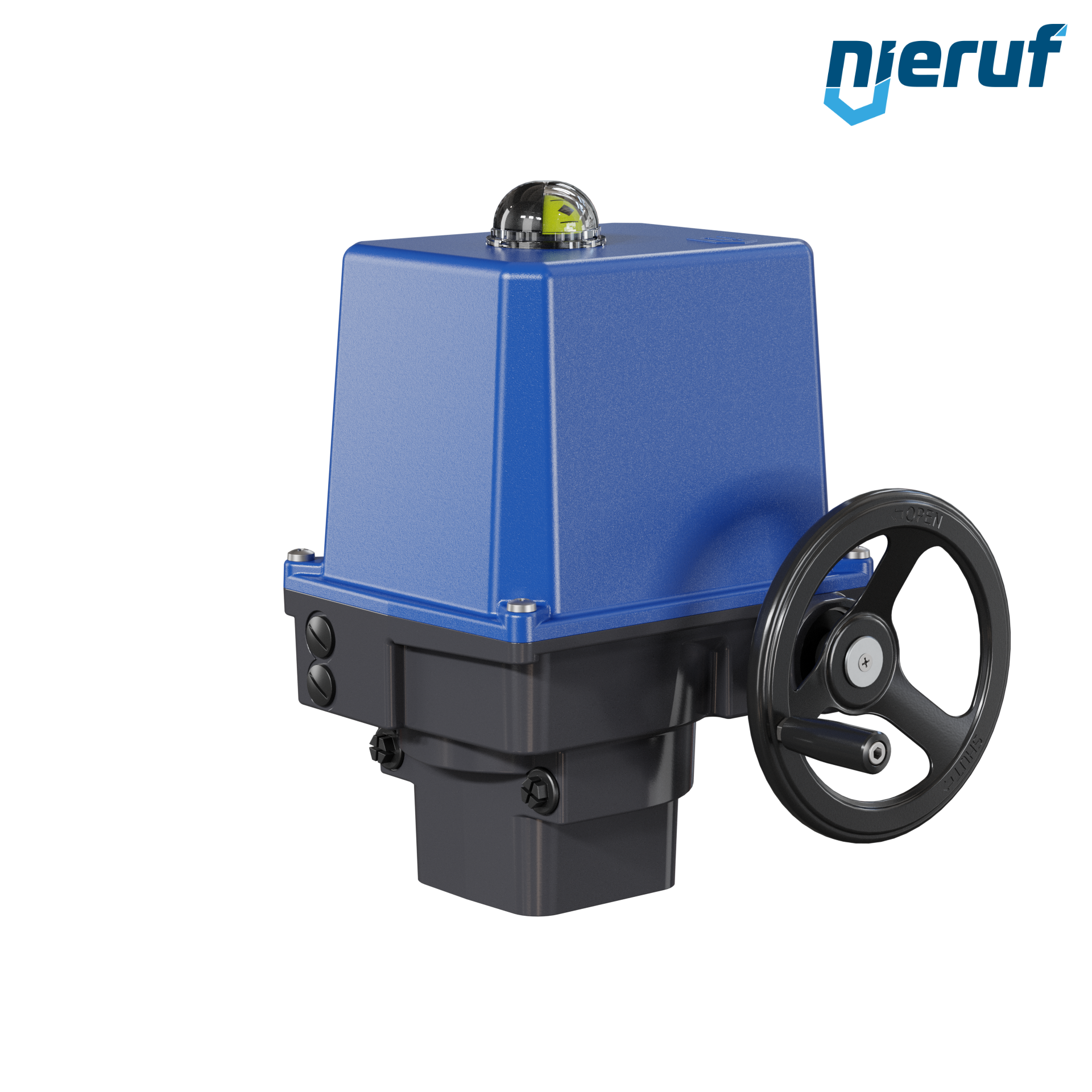Kompakter, elektrischer Schwenkantrieb für den Steuer- und Regelbetrieb. 90° Schwenkwinkel mit optischer Stellungsanzeige und Handrad, automatische 1-Tasten-Inbetriebnahme.