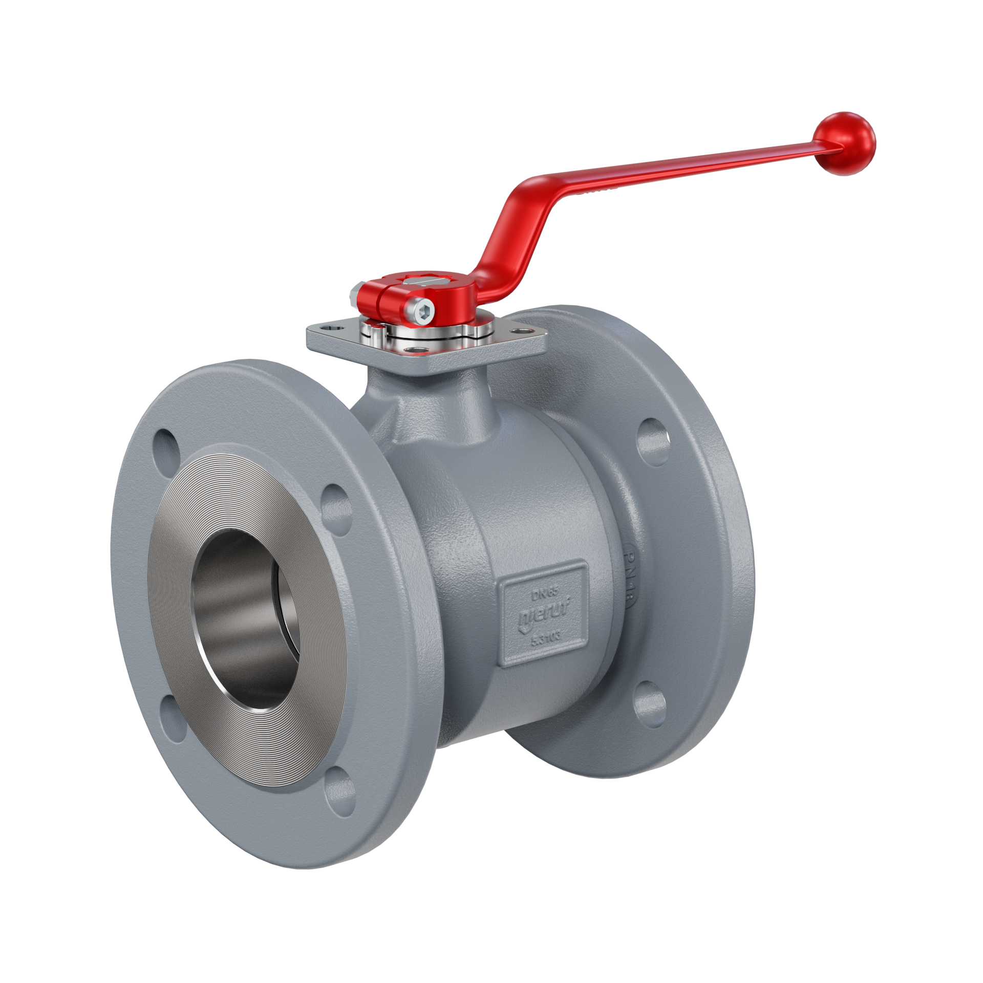 Flanschkugelhahn DN65 FK01 Gehäuse Sphäroguss GJS 400-18 Kugel Stahl verchromt Dichtung PTFE / GF für flüssige & gasförmige Medien