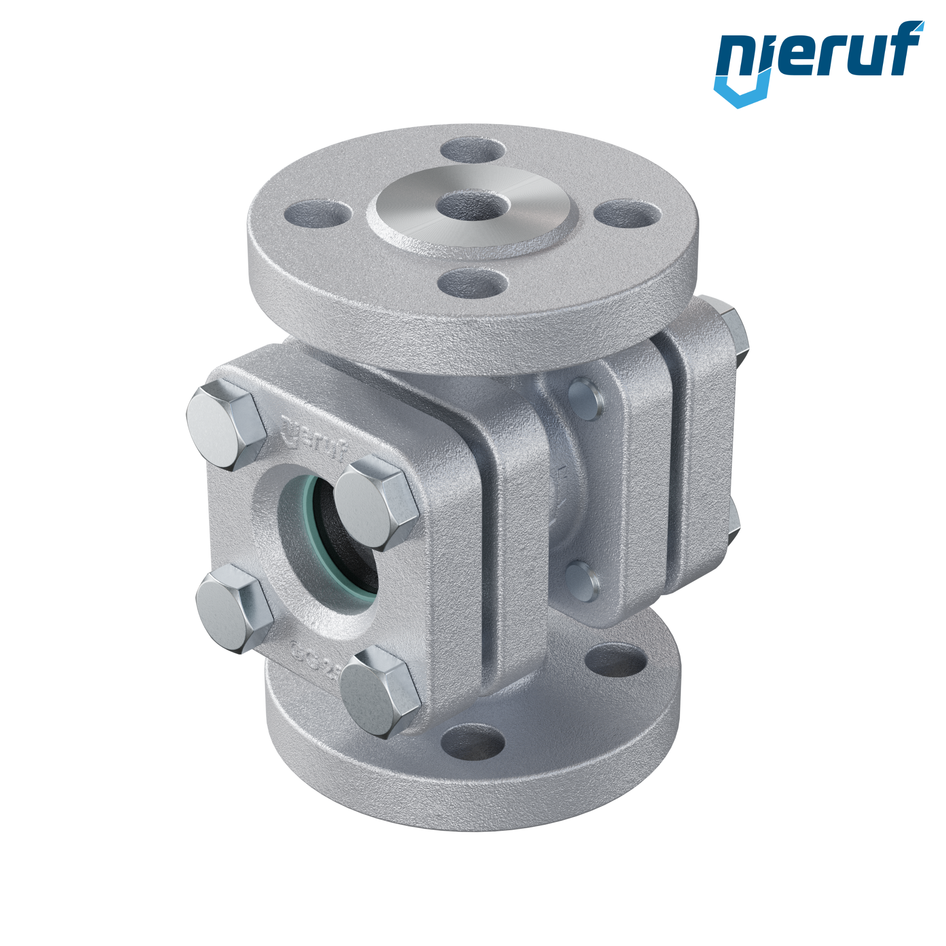 Flansch Schauglas DN15 Borosilikatglas Typ FS01 Grauguss GG25 Graphit max 16 bar Version mit Tropfnase