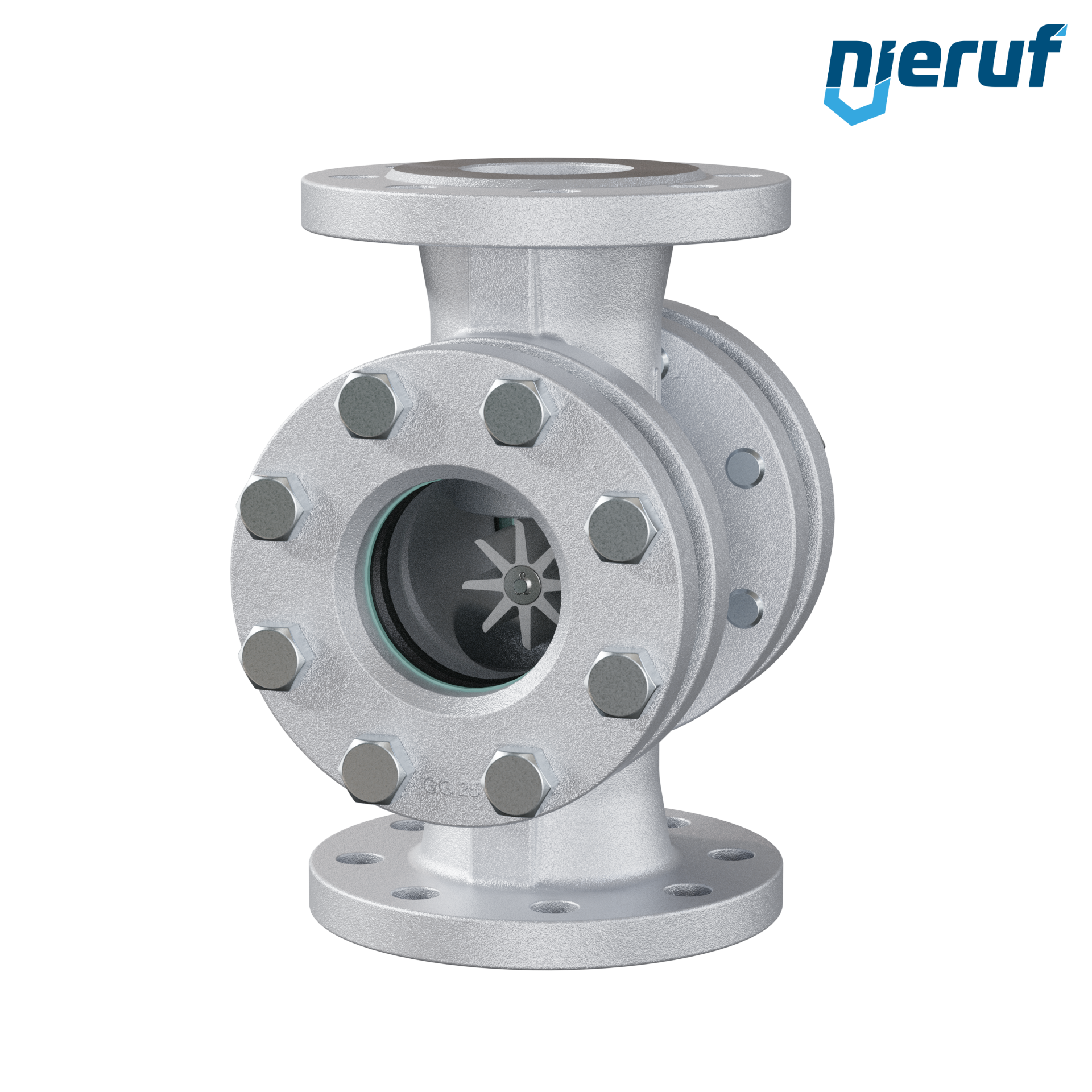 Flansch Schauglas Version mit PTFE-Rotor Typ FS01 aus Grauguss GG25, Borosilikatglas und Dichtung Graphit DN65 - 2 1/2" Zoll Flansch ANSI 150 16 bar