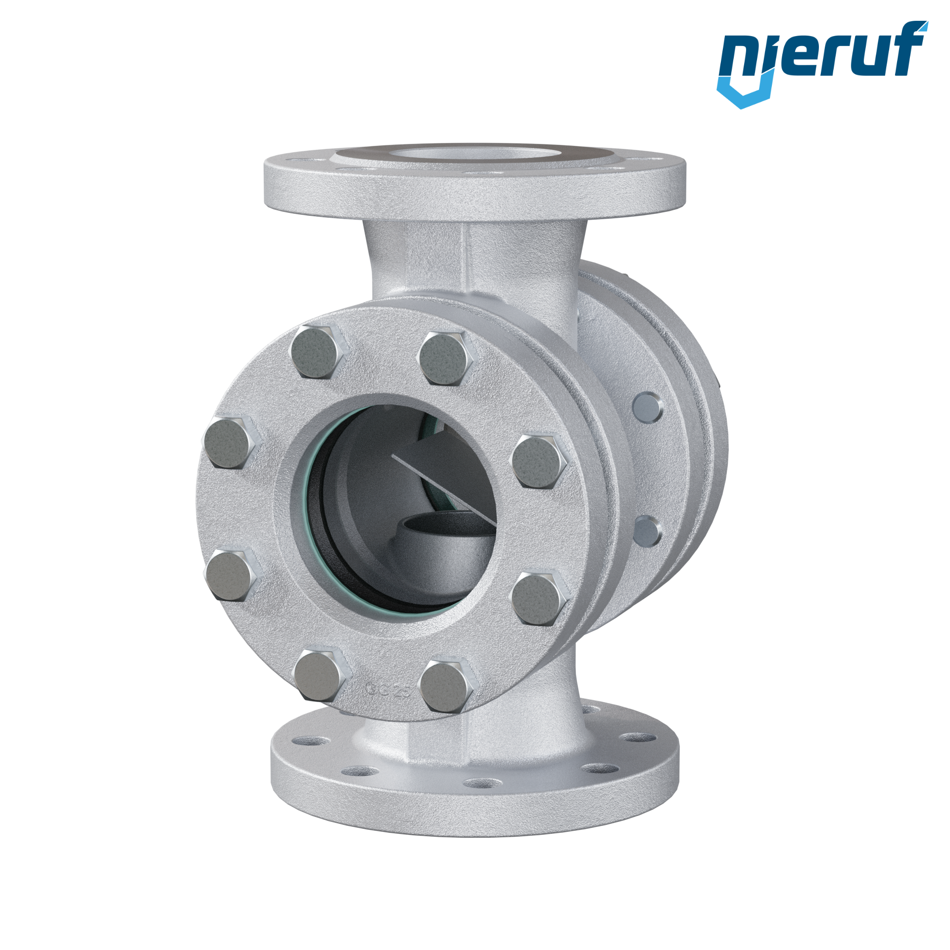 Flansch Schauglas DN80 Version mit Klappe Typ FS01 Grauguss GG25 Borosilikatglas Graphit max 16 bar