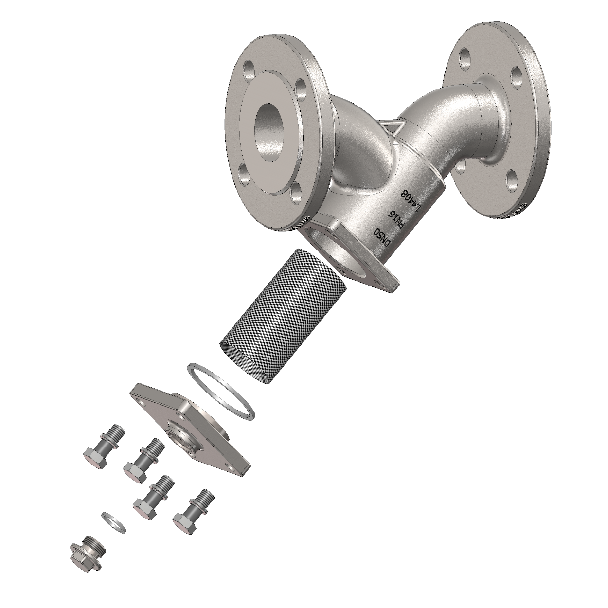 | Produktmerkmal | Flansch-Schmutzfänger aus Edelstahl in Y-Bauart mit Verschlusstopfen und herausnehmbarem Edelstahlfilter, horizontaler oder vertikaler Einbau. |
