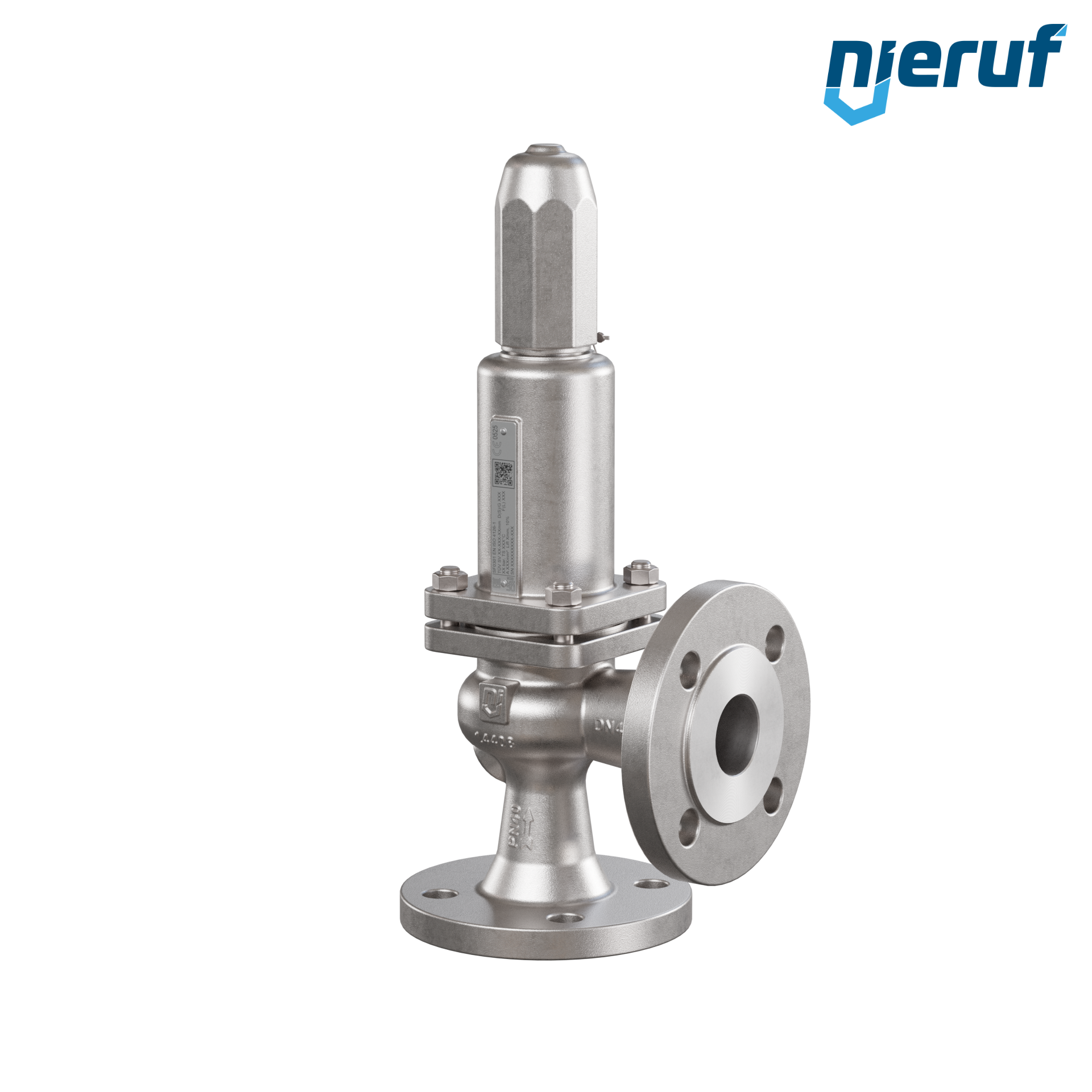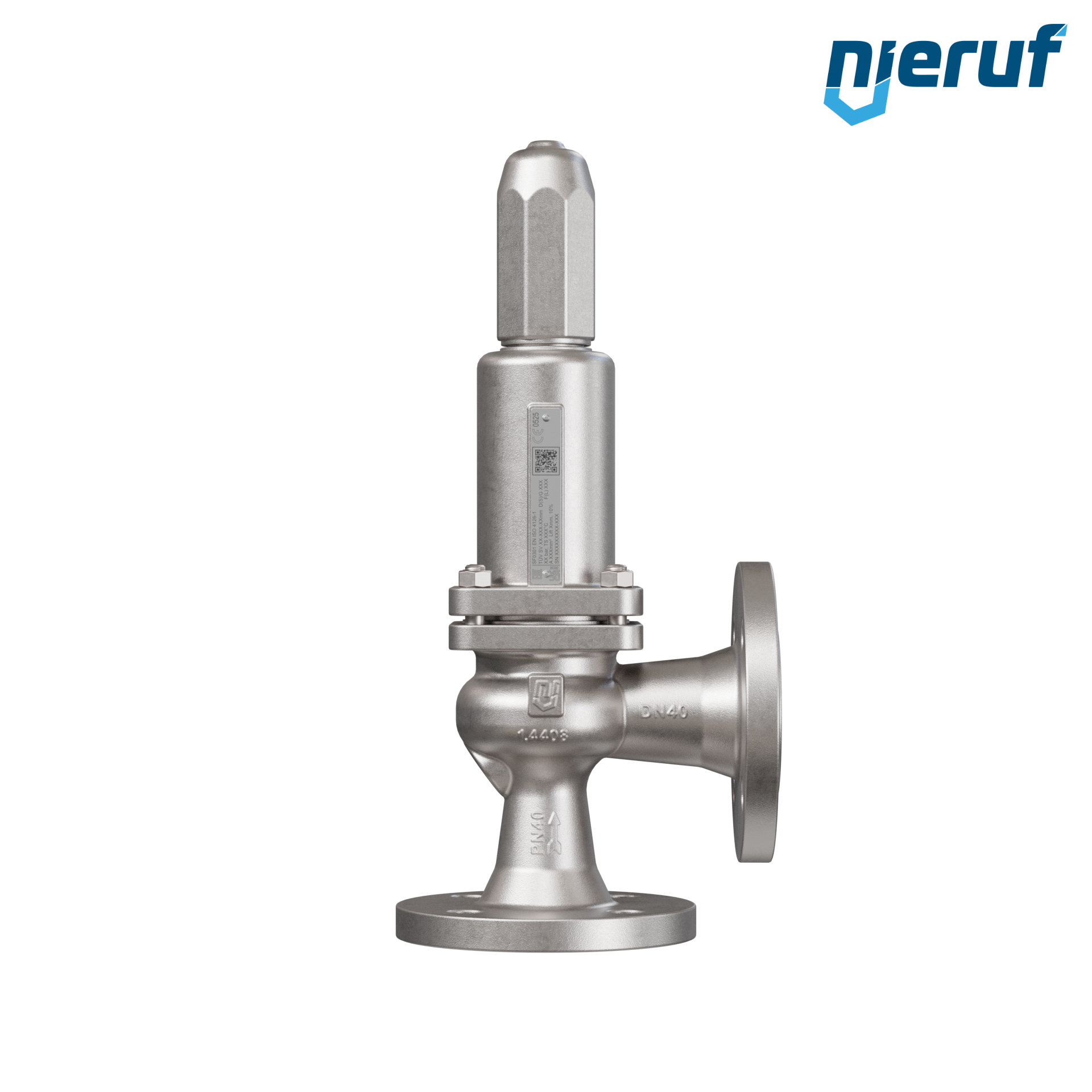 Flansch-Sicherheitsventil Eingang DN40 Ausgang DN40 für flüssige und gasförmige Medien, aus Edelstahl 1.4408 Dichtung FPM Druck 0,5 bis max. 40 bar