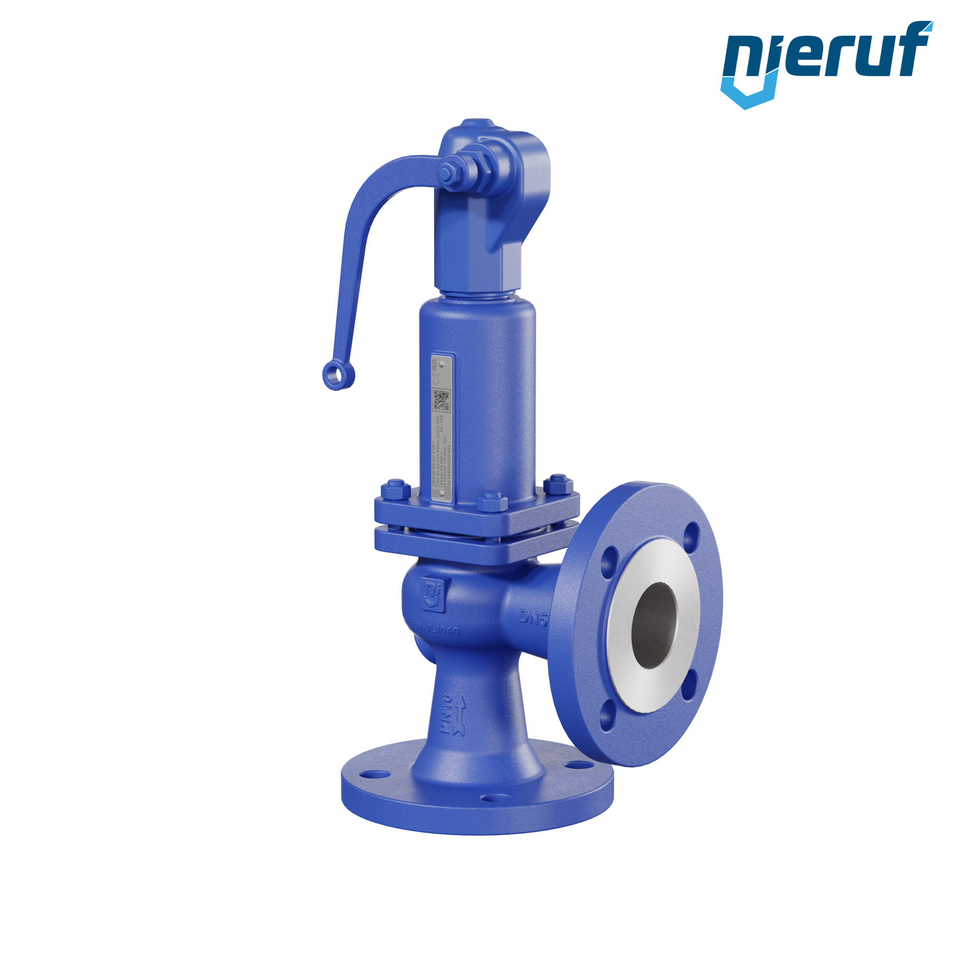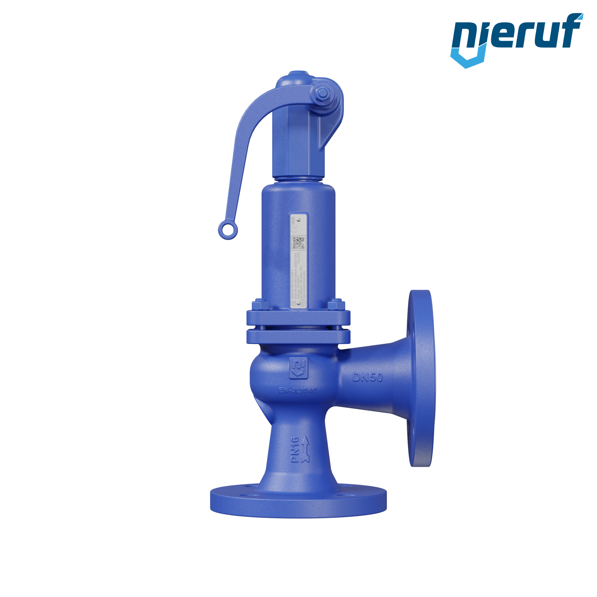 Flansch-Sicherheitsventil DN50/DN50 aus Grauguss EN-JL1040 Dichtung FPM Einstelldruck 0,5 bis max. 16 bar Anlüftung mit Hebel