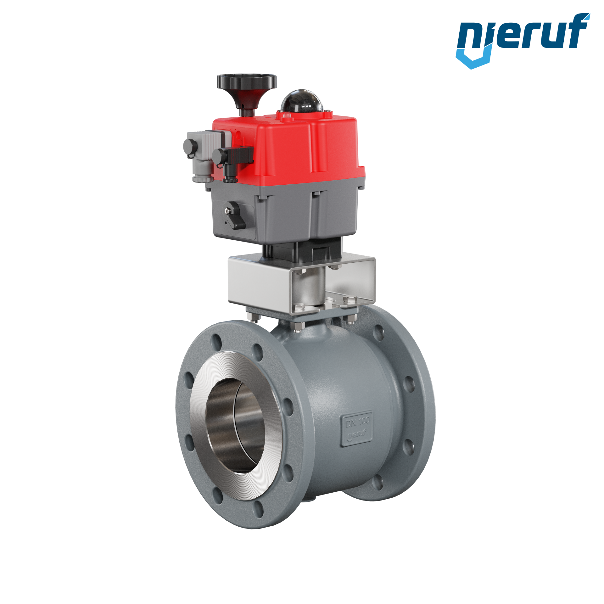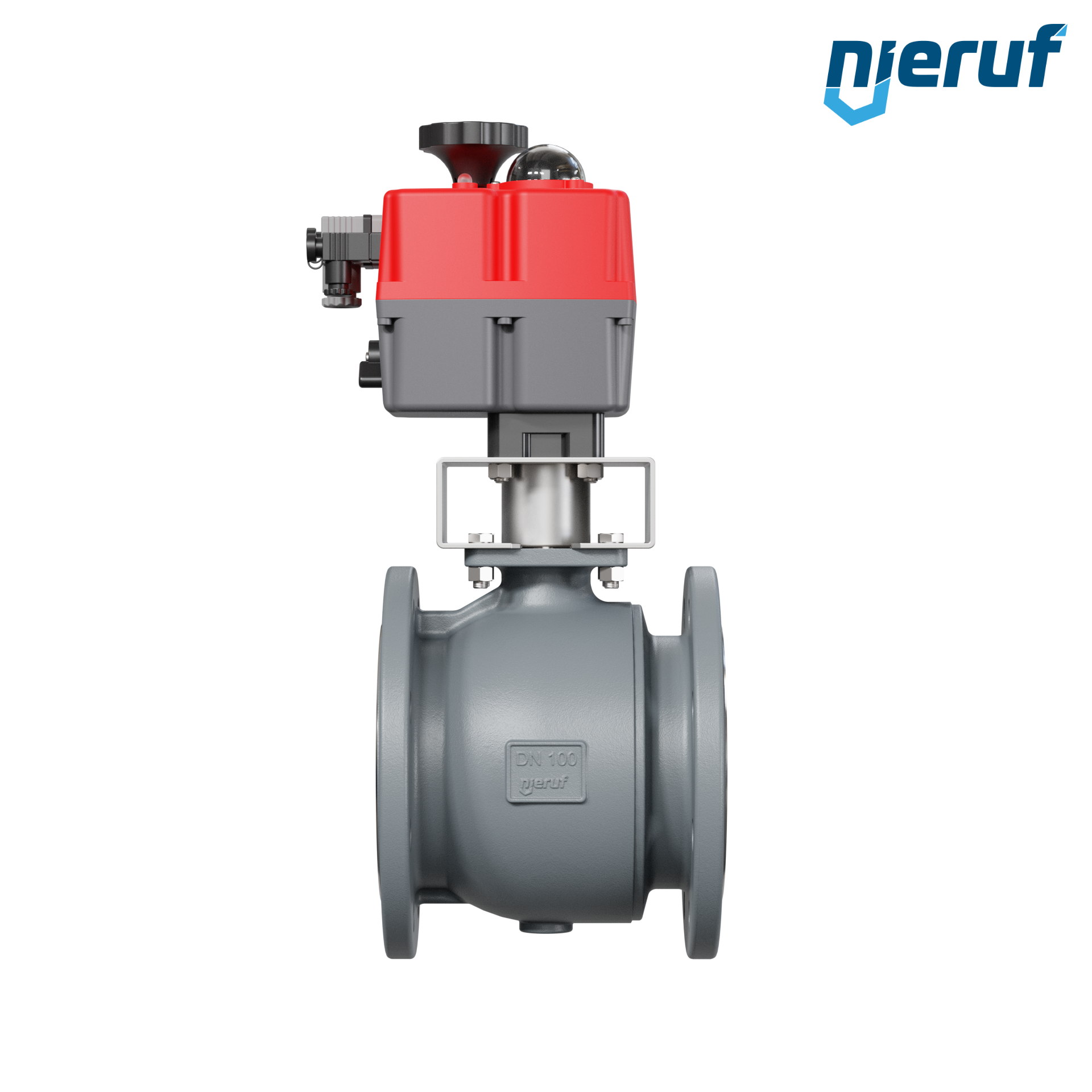 Dieser hoch qualitative Automatik-Flanschkugelhahn aus Sphäroguss mit elektronischem Drehantrieb (Serie S) hat eine optische Stellungsanzeige und eine Handnotbetätigung.