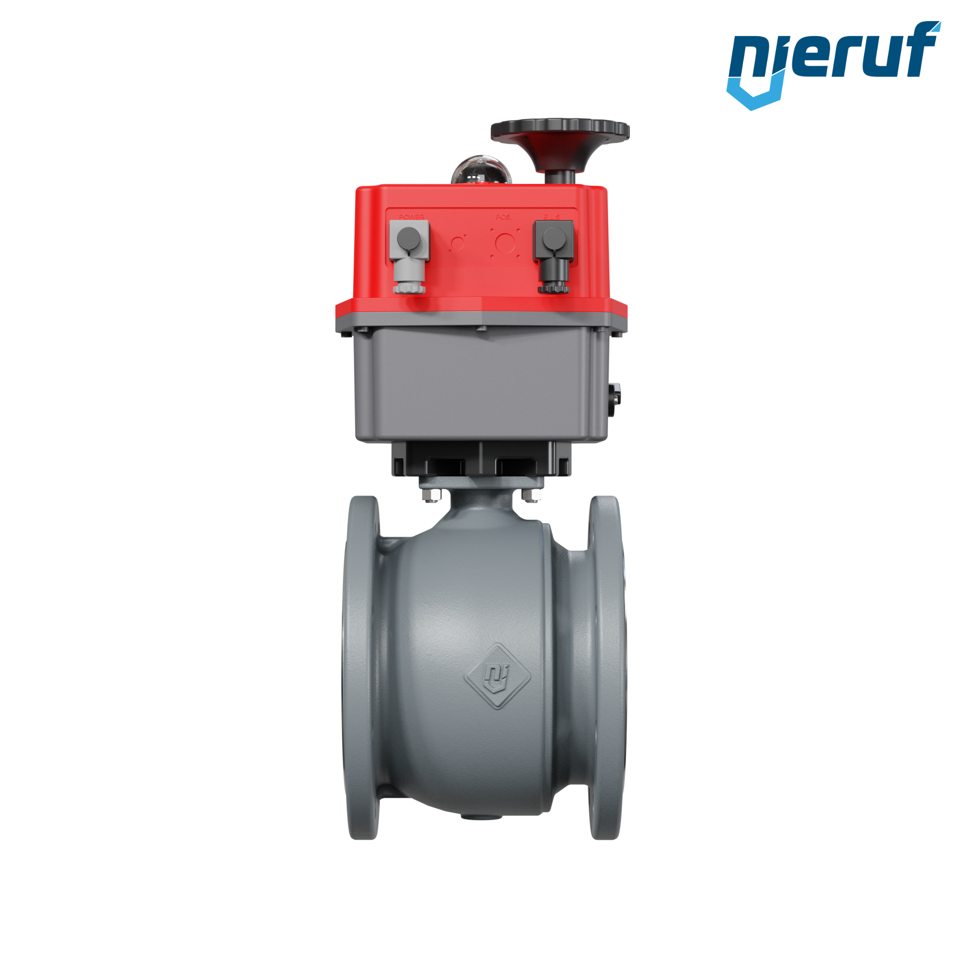 Dieser hoch qualitative Automatik-Flanschkugelhahn aus Sphäroguss mit elektronischem Drehantrieb (Serie S) hat eine optische Stellungsanzeige und eine Handnotbetätigung.