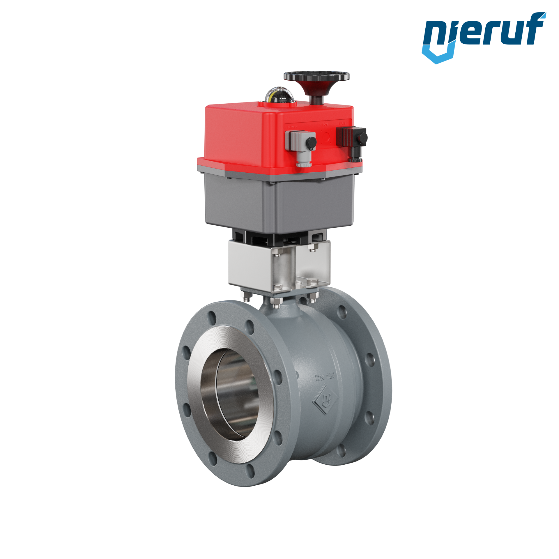 Dieser hoch qualitative Automatik-Flanschkugelhahn aus Sphäroguss mit elektronischem Drehantrieb (Serie S) hat eine optische Stellungsanzeige und eine Handnotbetätigung.