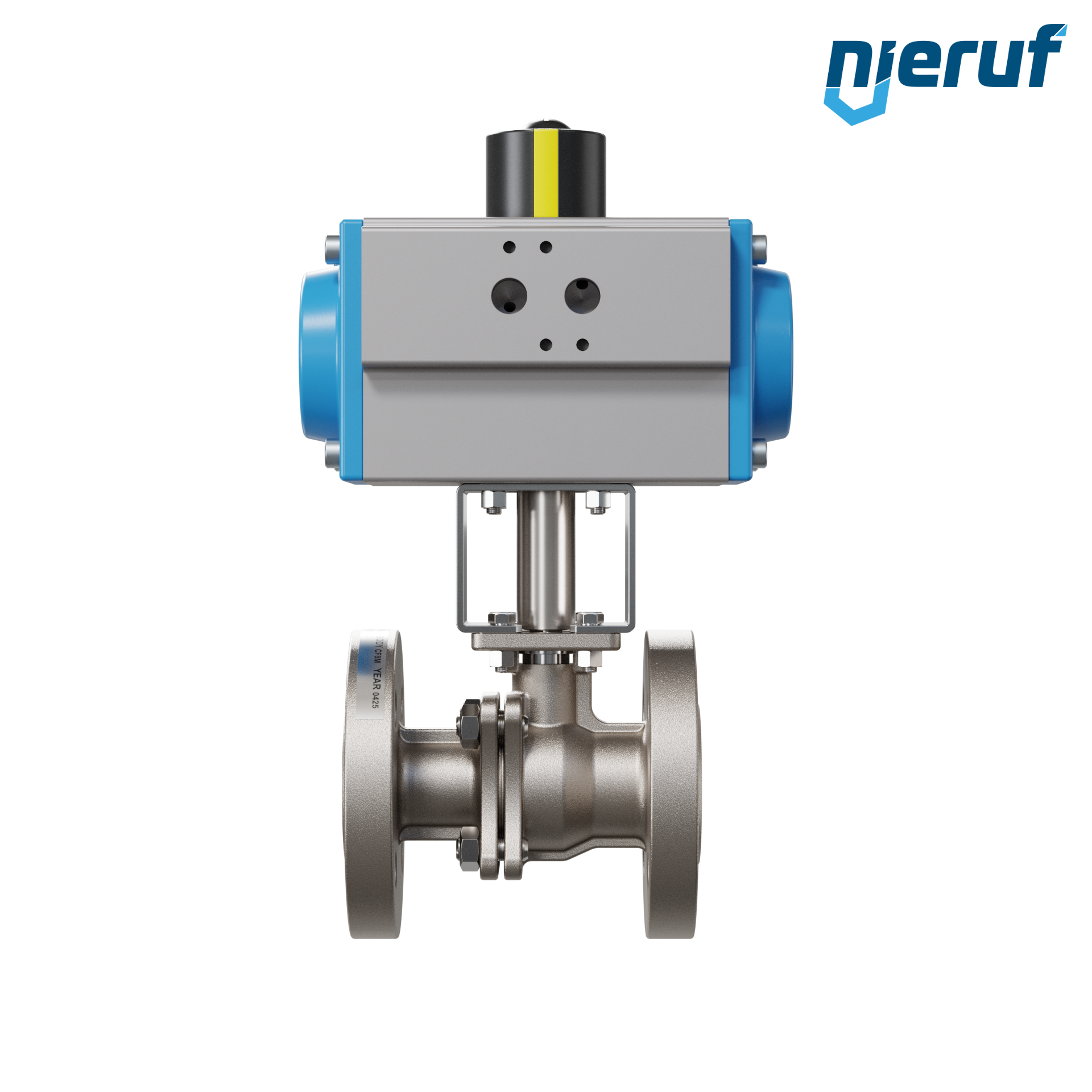 Flanschkugelhahn DN20 Edelstahl 1.4408 PK05 pneumatischer Drehantrieb GS063 aus Aluminium (Wirkungsweise: GS = einfachwirkend)