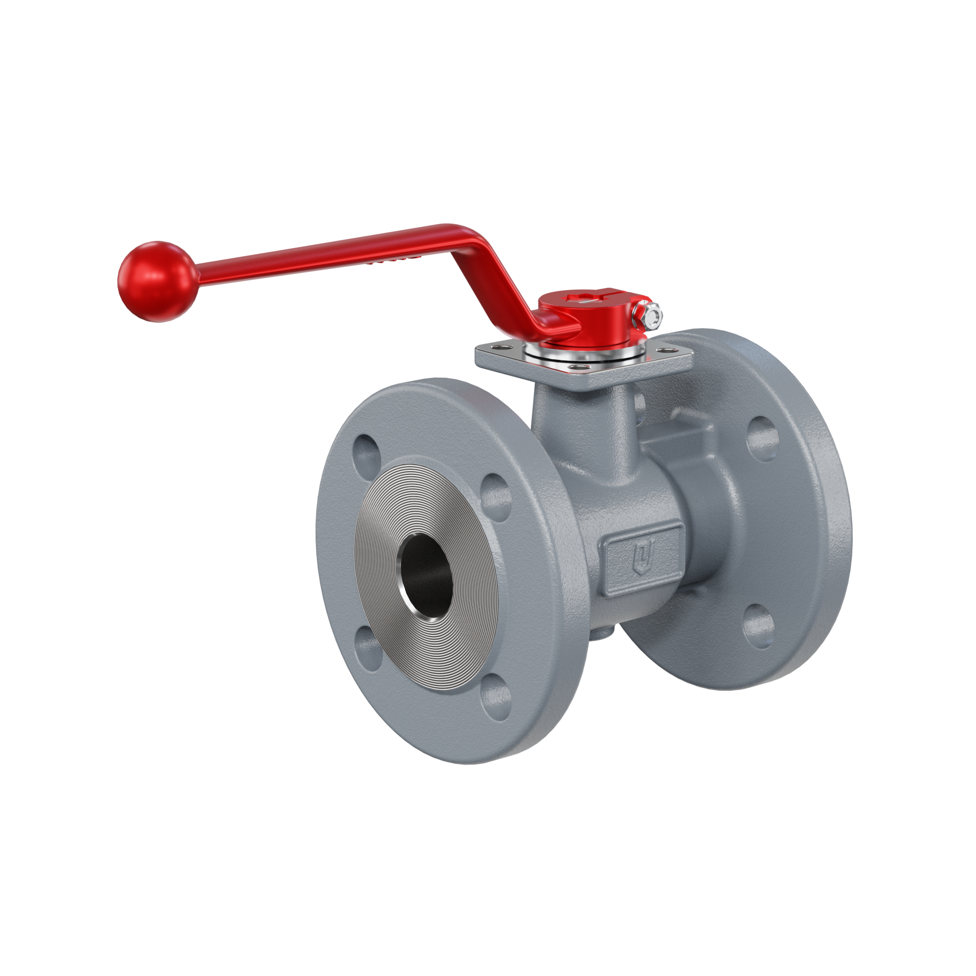 Flanschkugelhahn DN25 FK01 Gehäuse Sphäroguss GJS 400-18 Kugel Stahl verchromt Dichtung PTFE / GF für flüssige & gasförmige Medien