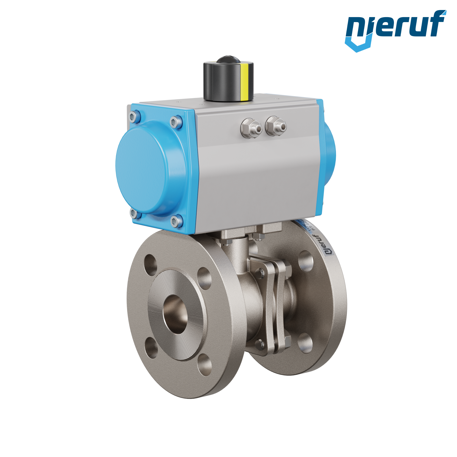 Für diesen hoch qualitativen Automatik-Muffenkugelhahn aus Edelstahl mit pneumatischem Drehantrieb (GS = einfachwirkend) ist keine Brücke und kein Mitnehmer notwendig.