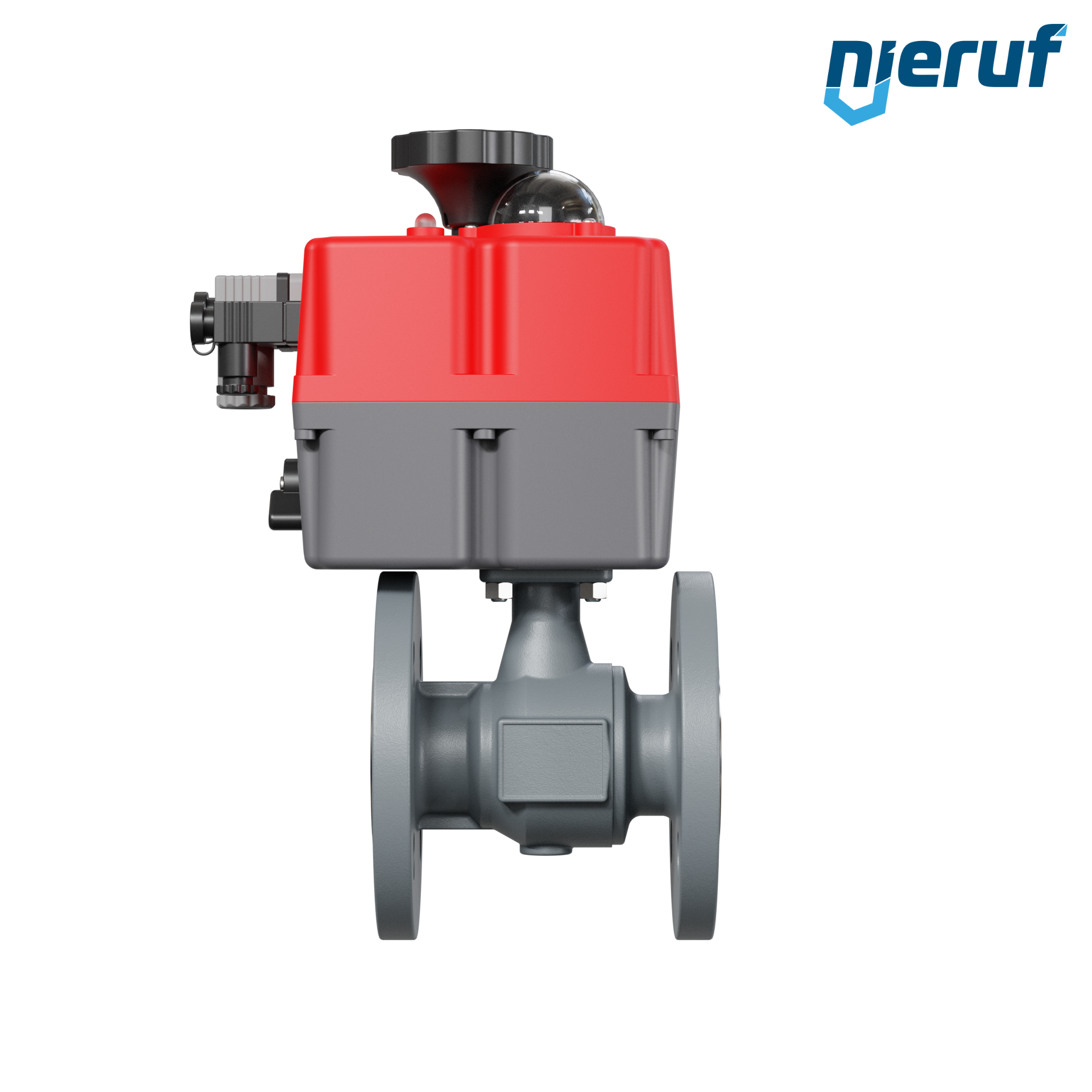 Dieser hoch qualitative Automatik-Flanschkugelhahn aus Sphäroguss mit elektronischem Drehantrieb (Serie S) hat eine optische Stellungsanzeige und eine Handnotbetätigung.