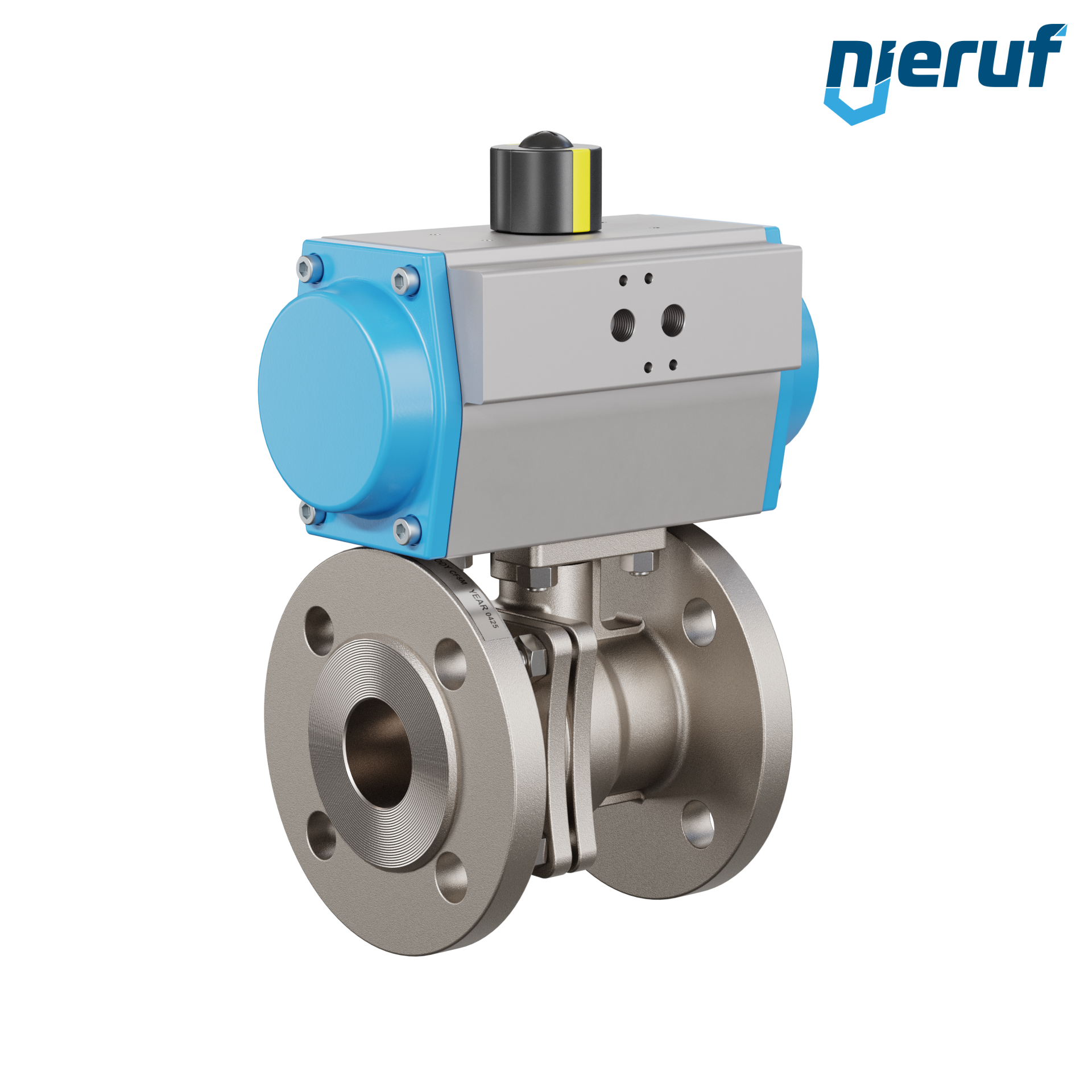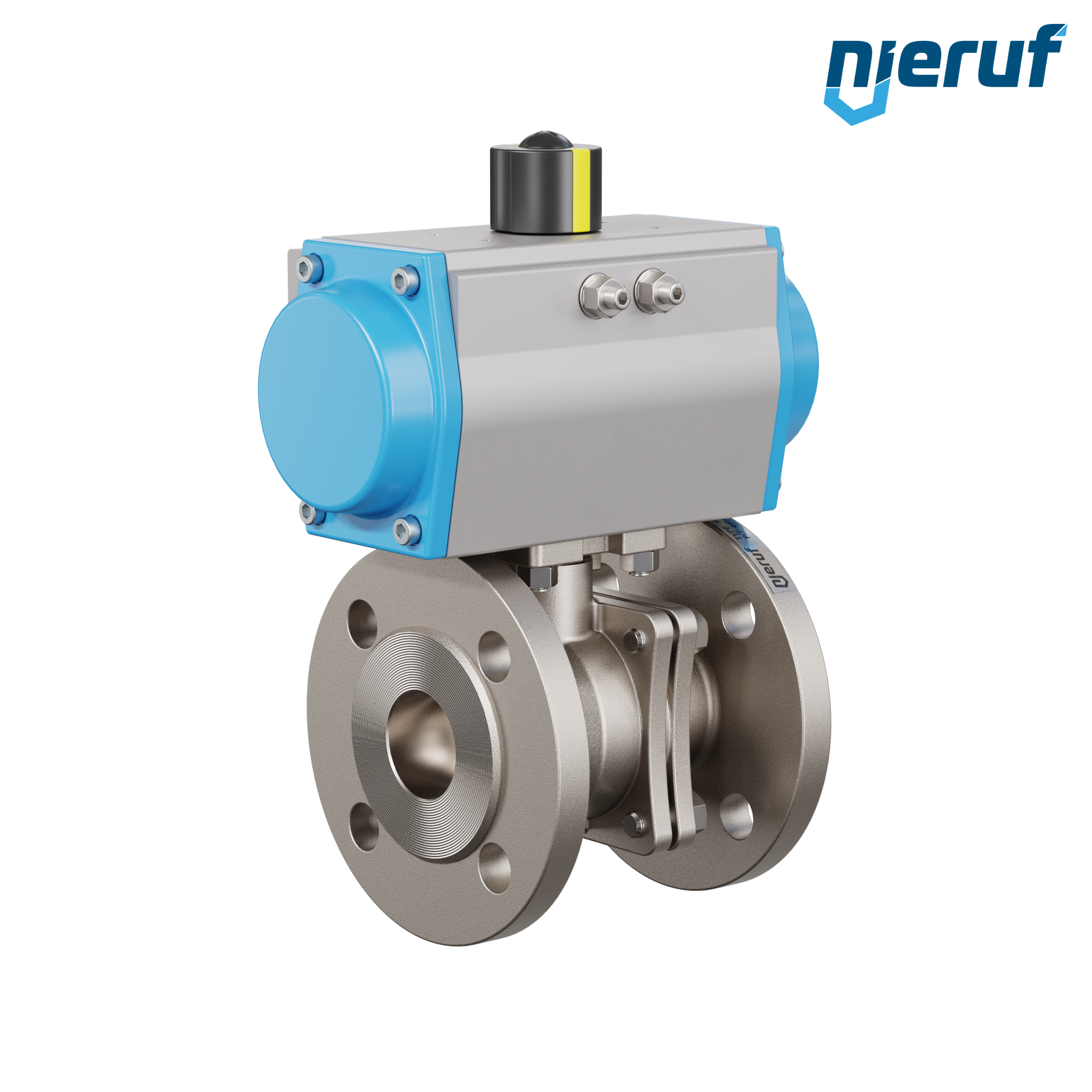 Für diesen hoch qualitativen Automatik-Muffenkugelhahn aus Edelstahl mit pneumatischem Drehantrieb (GS = einfachwirkend) ist keine Brücke und kein Mitnehmer notwendig.
