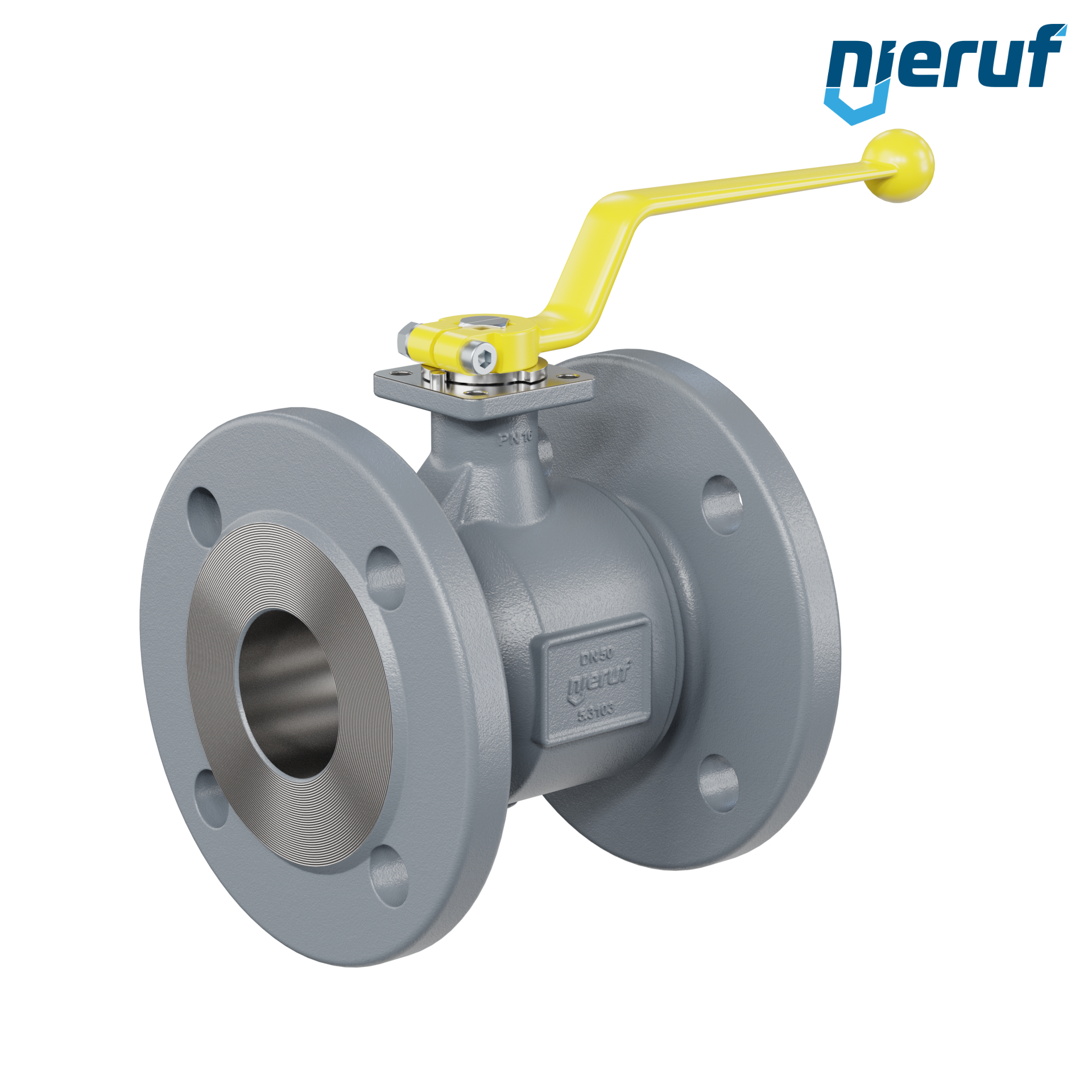 Flanschkugelhahn DN50 FK02 Gehäuse Sphäroguss GJS 400-18 Kugel (voll) Edelstahl 1.4408 Dichtung PTFE Zulassung DVGW-Gas