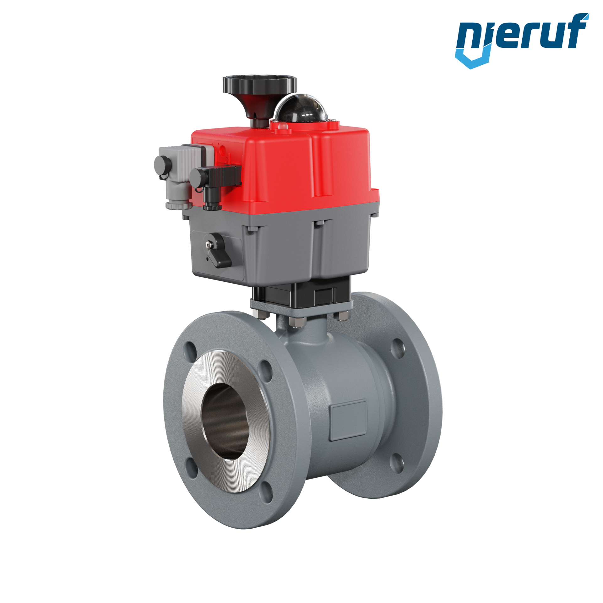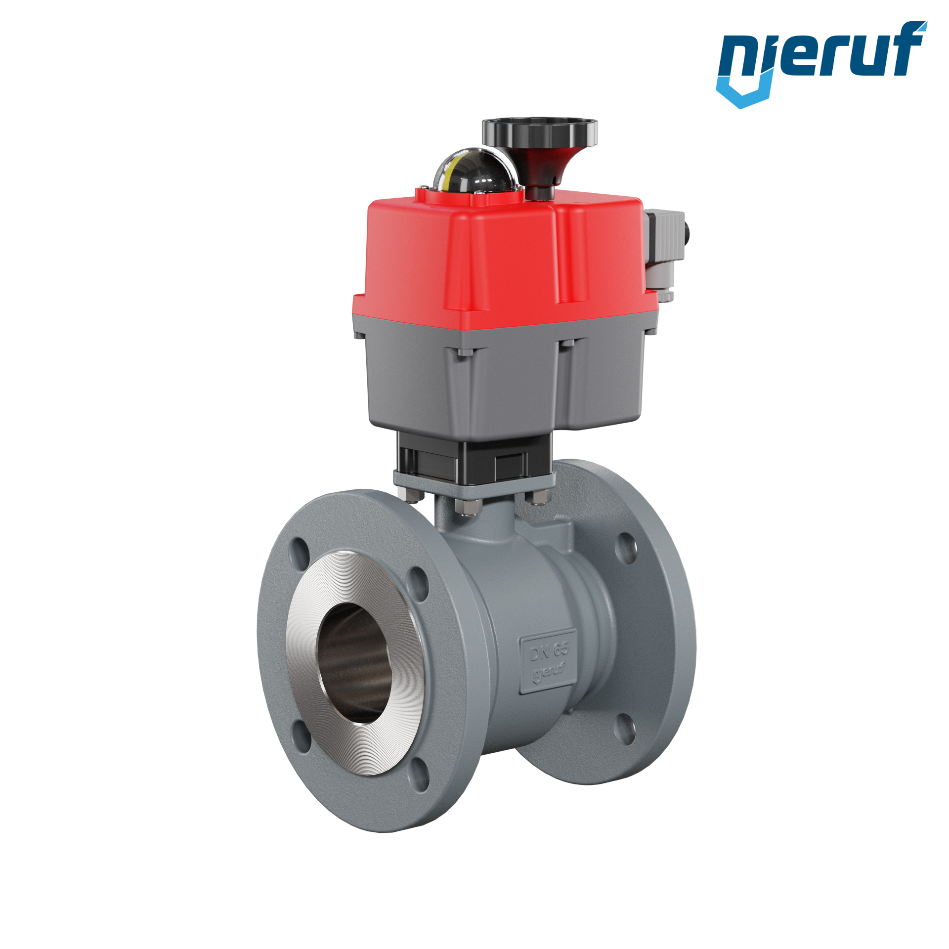 Dieser hoch qualitative Automatik-Flanschkugelhahn aus Sphäroguss mit elektronischem Drehantrieb (Serie S) hat eine optische Stellungsanzeige und eine Handnotbetätigung.