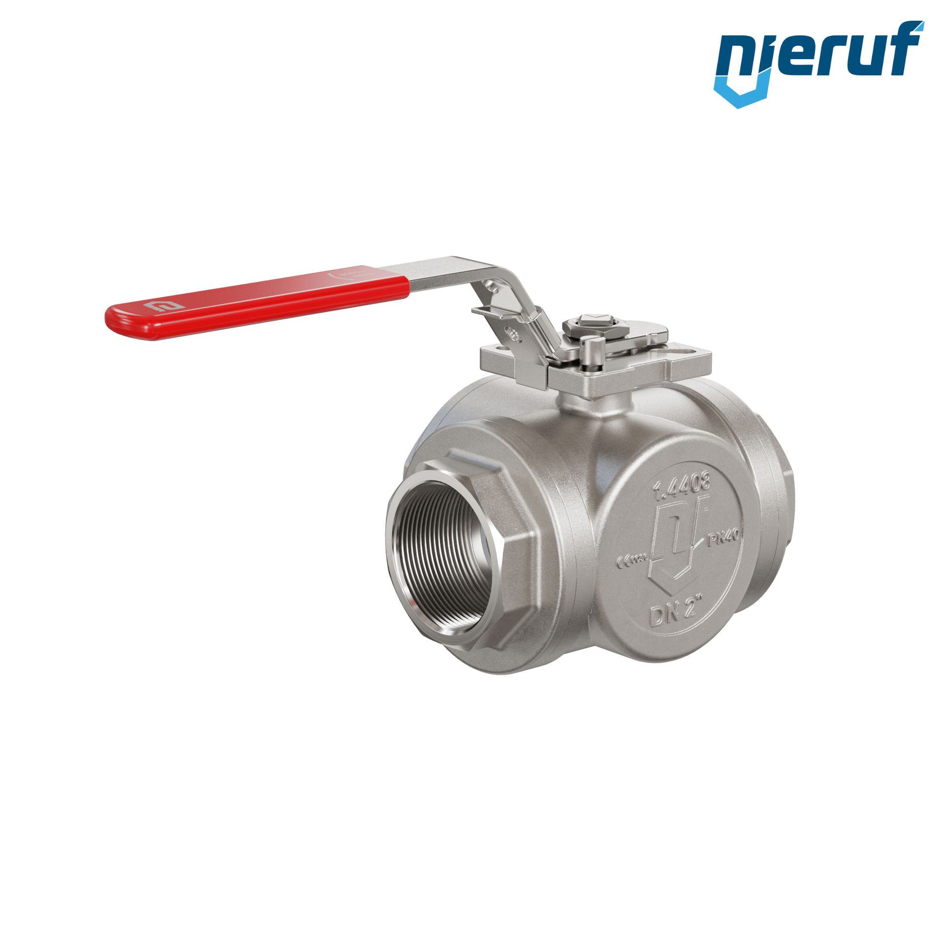 3-Wege Kugelhahn DN50 - 2" Zoll L-Bohrung Dichtungen aus PTFE in Edelstahl für flüssige & gasförmige Medien