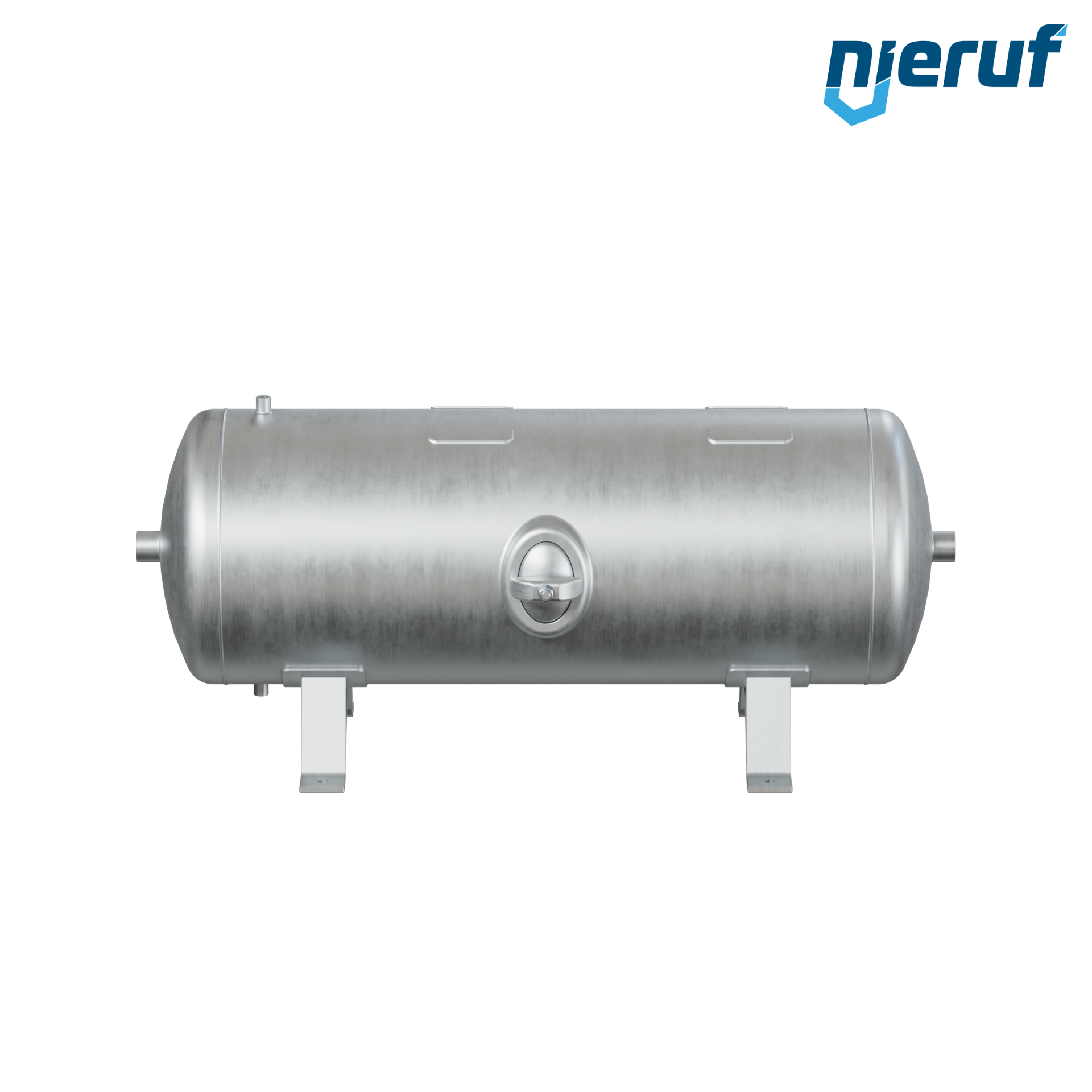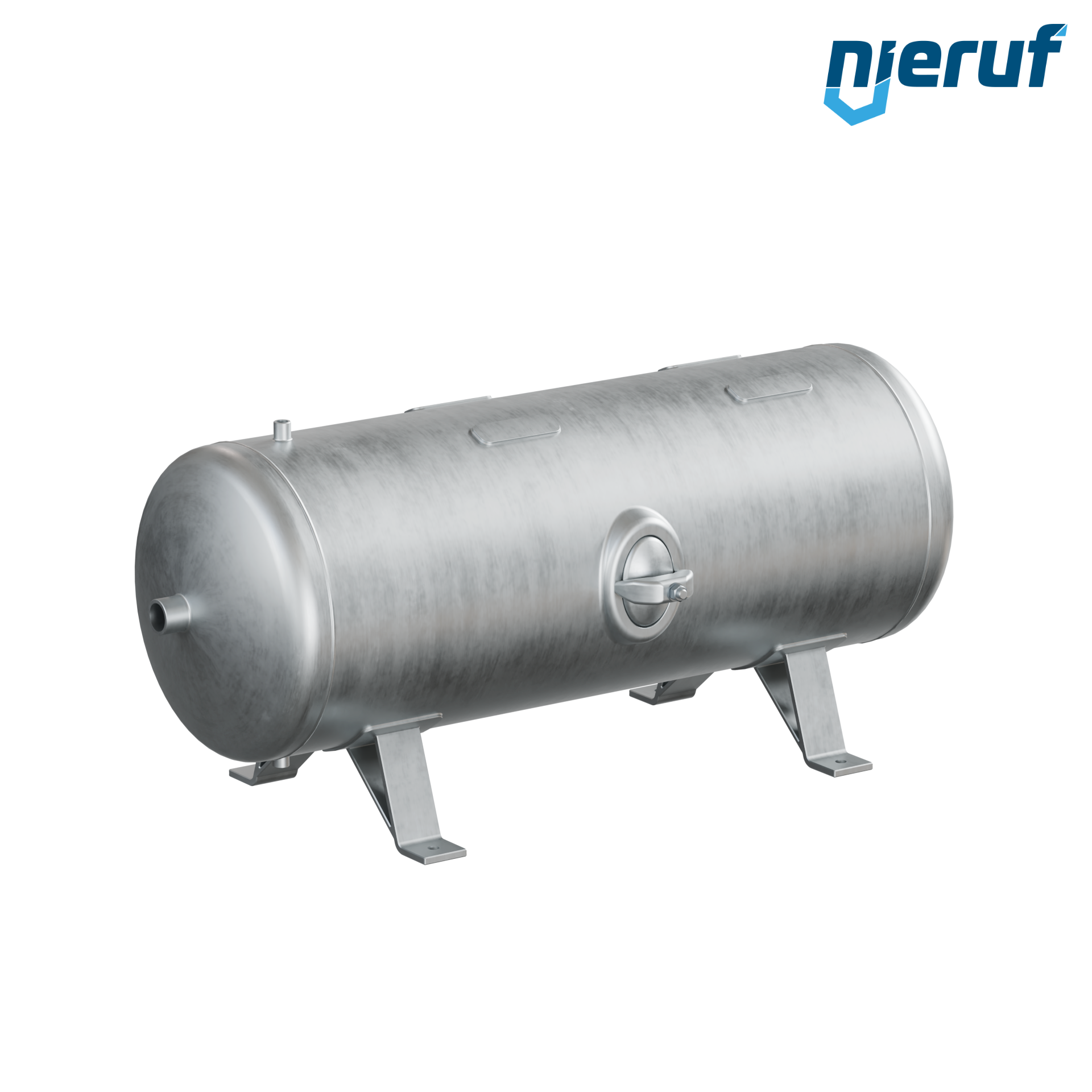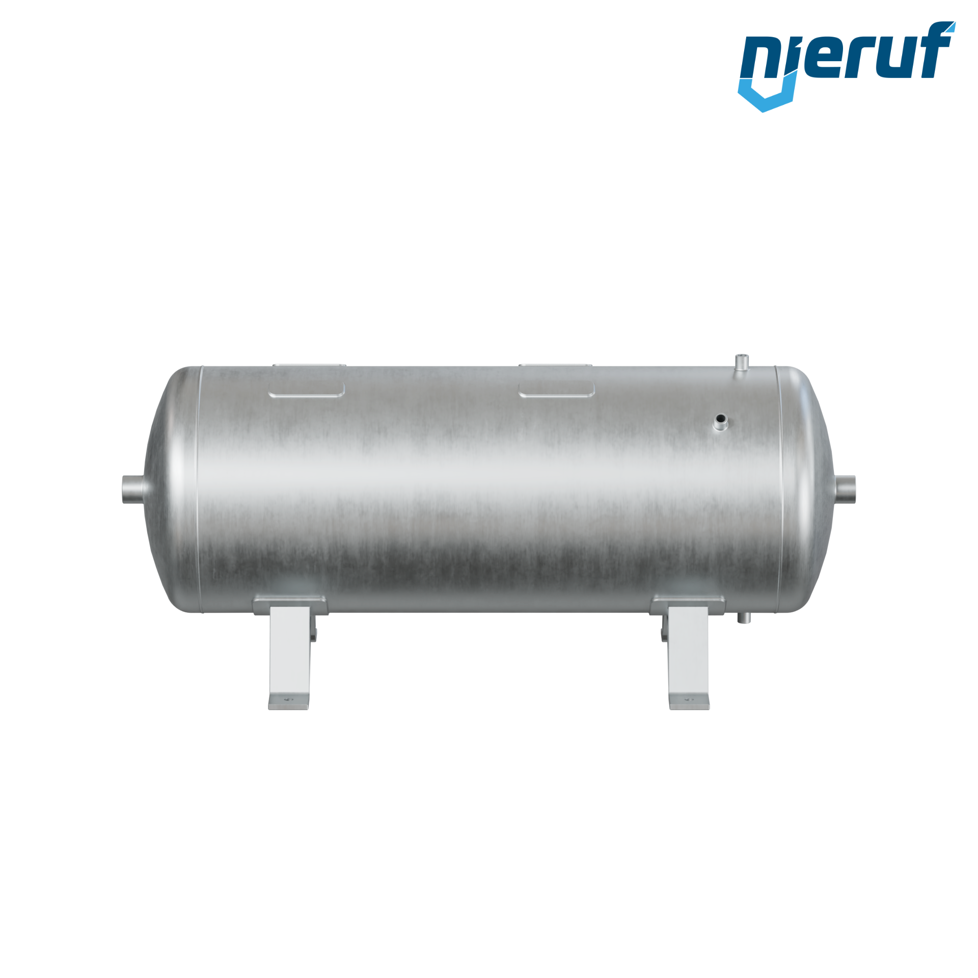 Hochdruckbehälter BE02 mit 250 Liter Volumen liegend in Betriebsdruck 0-41 bar aus Stahl feuerverzinkt und Durchmesser 500 mm
