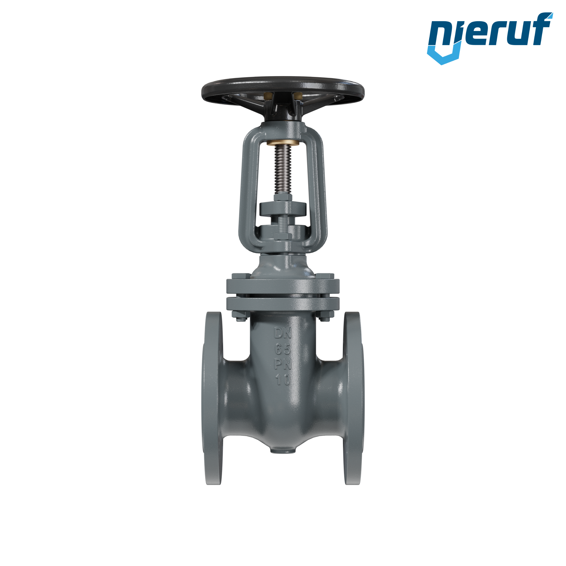 Keilflachschieber AS06 in Durchgangsform DN65 PN10 mit Flansch nach DIN EN 1092 Material Grauguss EN-GJL-250 mit außenliegender Spindel