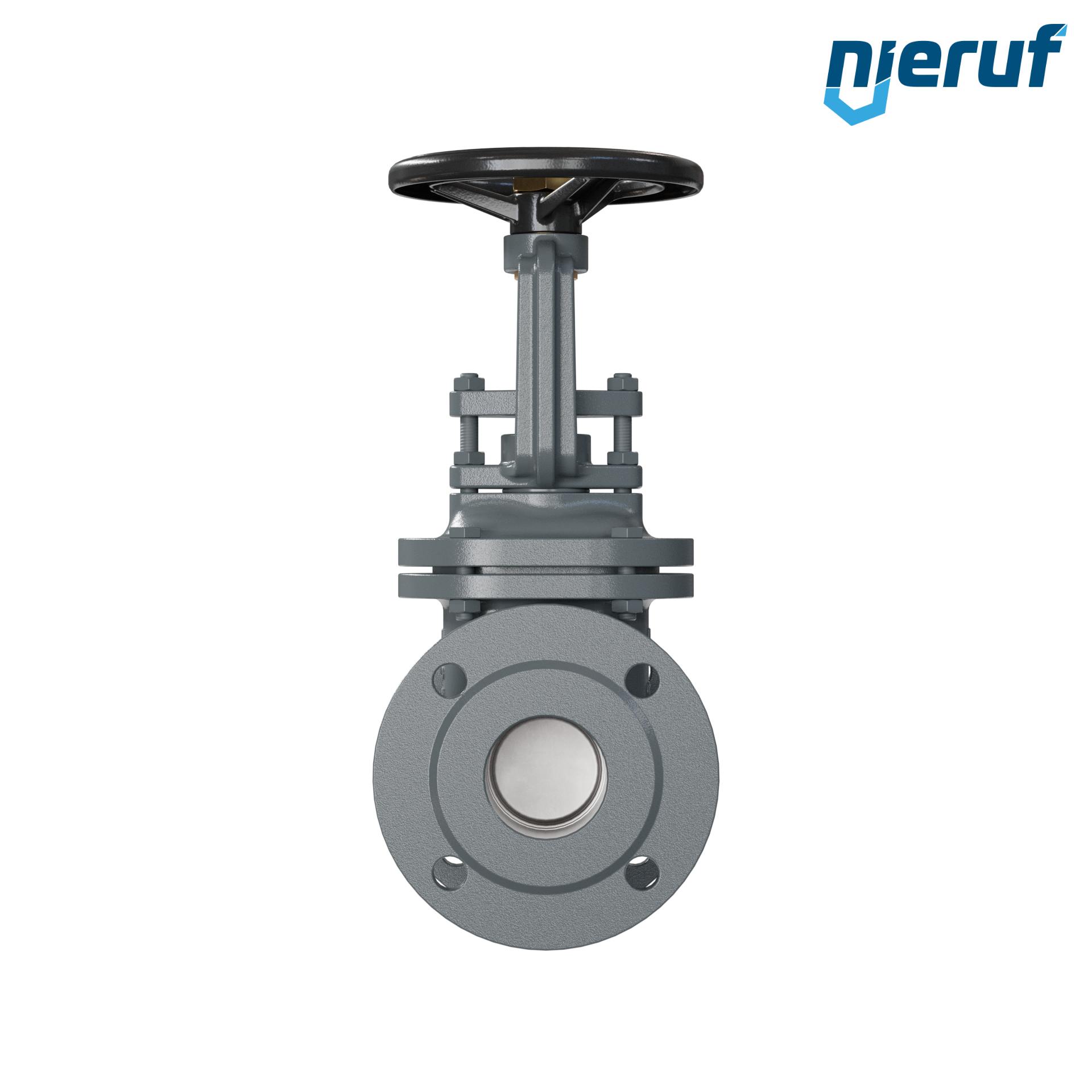 | Produktmerkmal | Keilflachschieber aus Grauguss in Durchgangsform mit Flanschanschluss und außenliegender Spindel sowie nicht steigendem Handrad. |