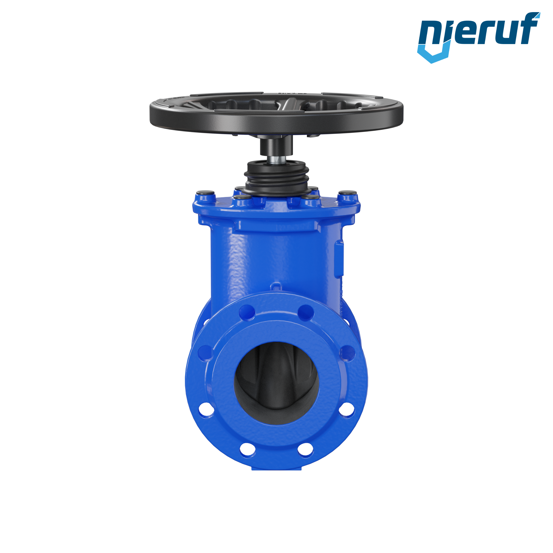 Keilflachschieber in Durchgangsform mit Flanschanschluss und nicht steigender Spindel.