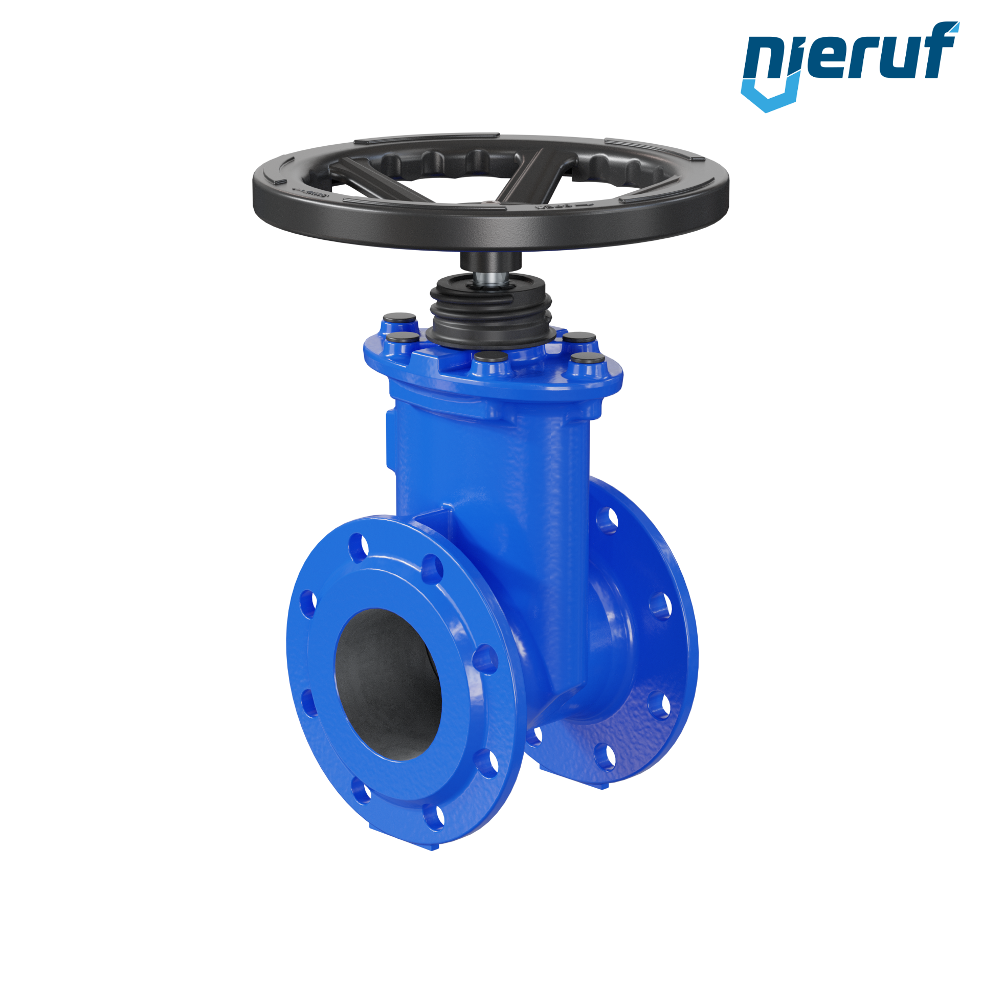 Keilflachschieber in Durchgangsform mit Flanschanschluss und nicht steigender Spindel.