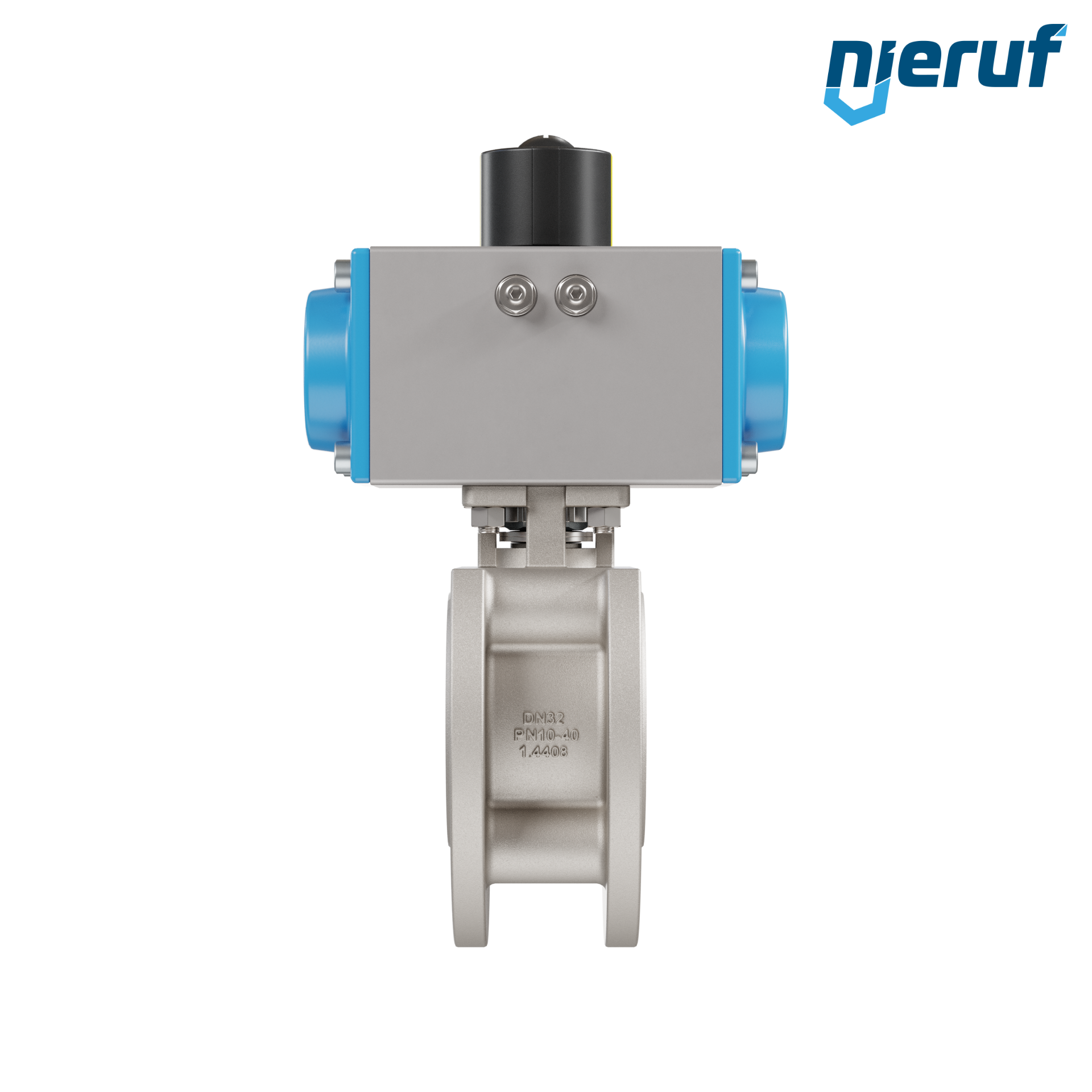 Für diesen hoch qualitativen Automatik-Flanschkugelhahn aus Edelstahl mit pneumatischem Drehantrieb (GD = doppeltwirkend) ist eine direkte Anflanschung von Magnetventilen nach Namur möglich.