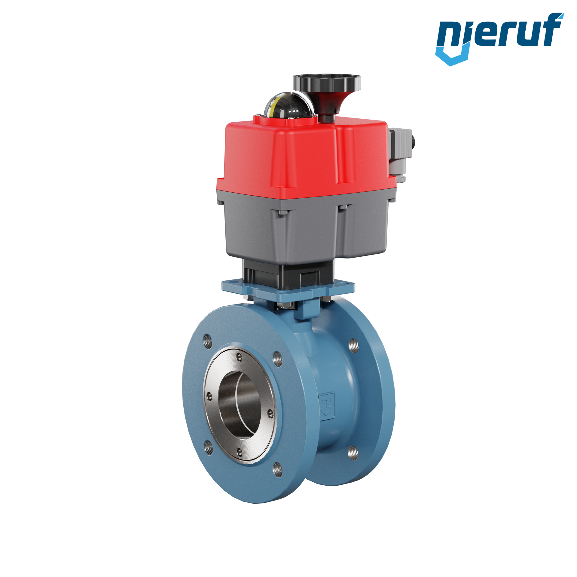 Dieser hoch qualitative Automatik-Kompaktflanschkugelhahn aus Stahlguss mit elektronischem Drehantrieb (Serie S = multi voltage) hat eine optische Stellungsanzeige und eine Handnotbetätigung.