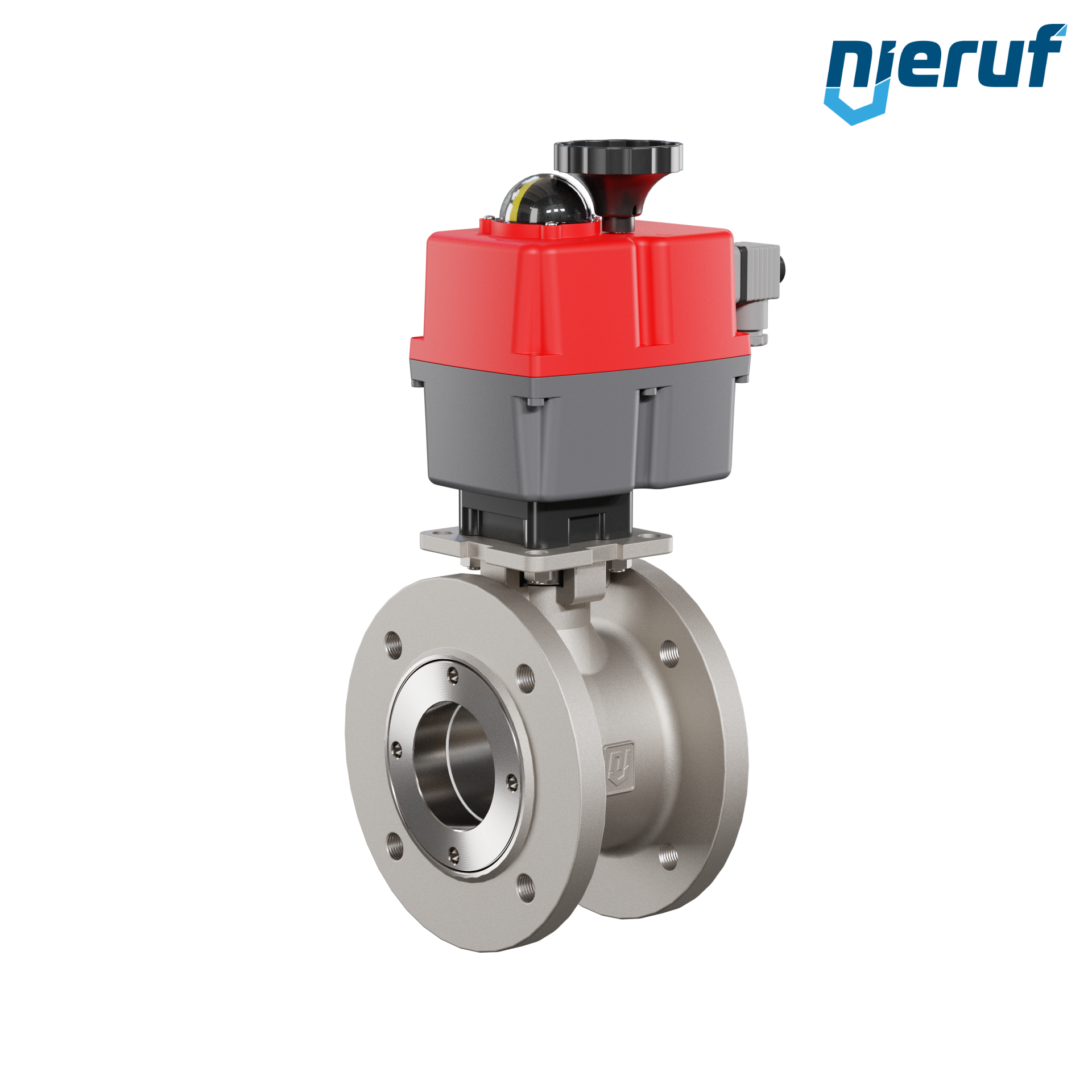 Dieser hoch qualitative Automatik-Kompaktflanschkugelhahn aus Edelstahl mit elektronischem Drehantrieb (Serie S = multi voltage) hat eine optische Stellungsanzeige und eine Handnotbetätigung.