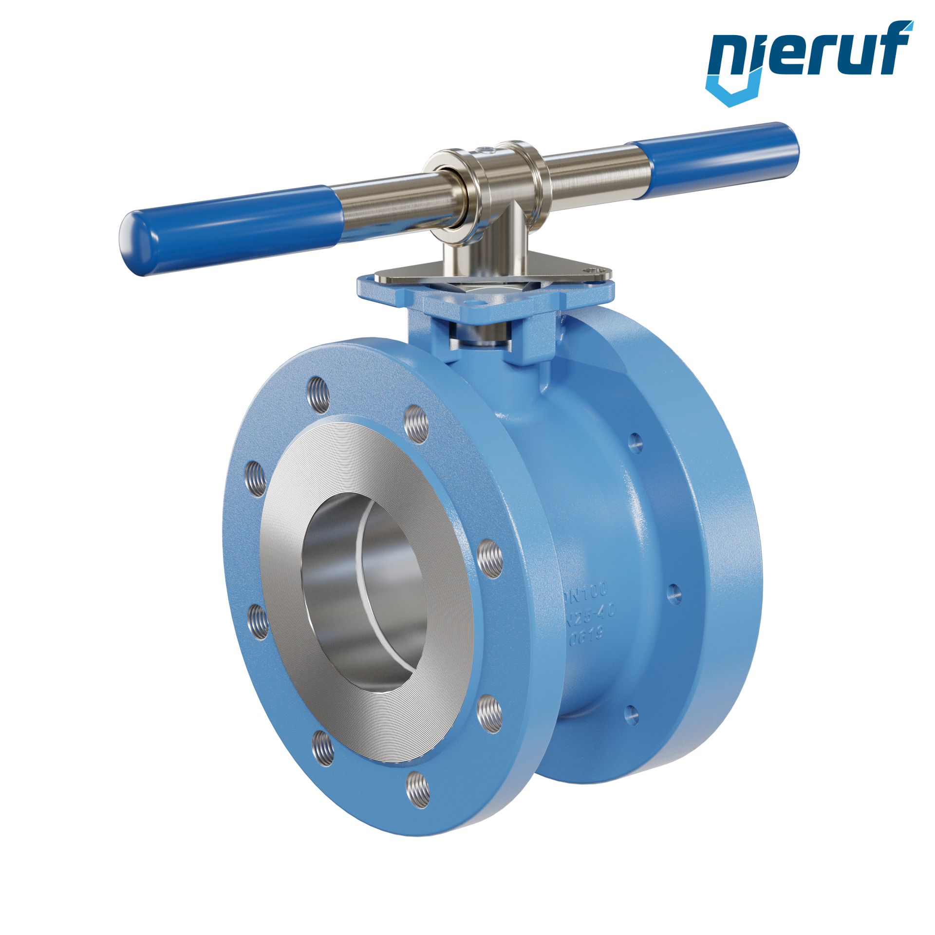| Antrieb | Handhebel aus Edelstahl 1.4310 mit blauer Ummantelung |