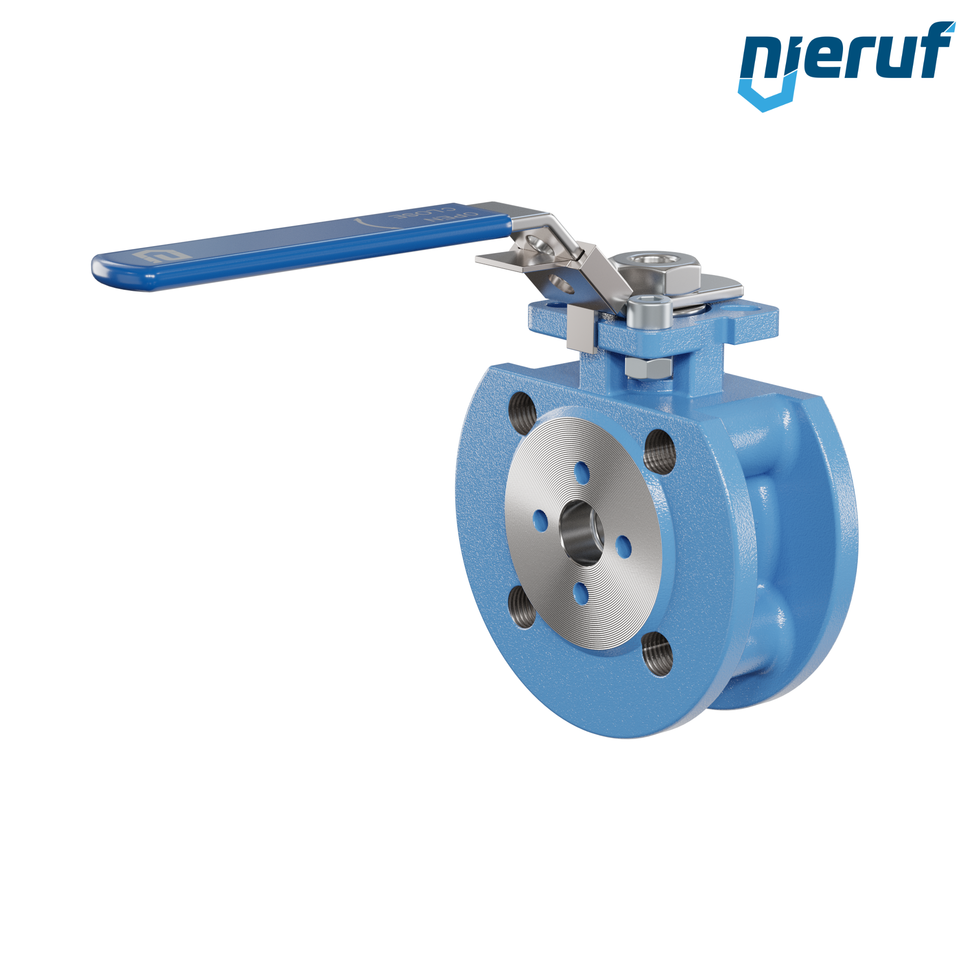 | Antrieb | Handhebel aus Edelstahl 1.4310 mit blauer Ummantelung |