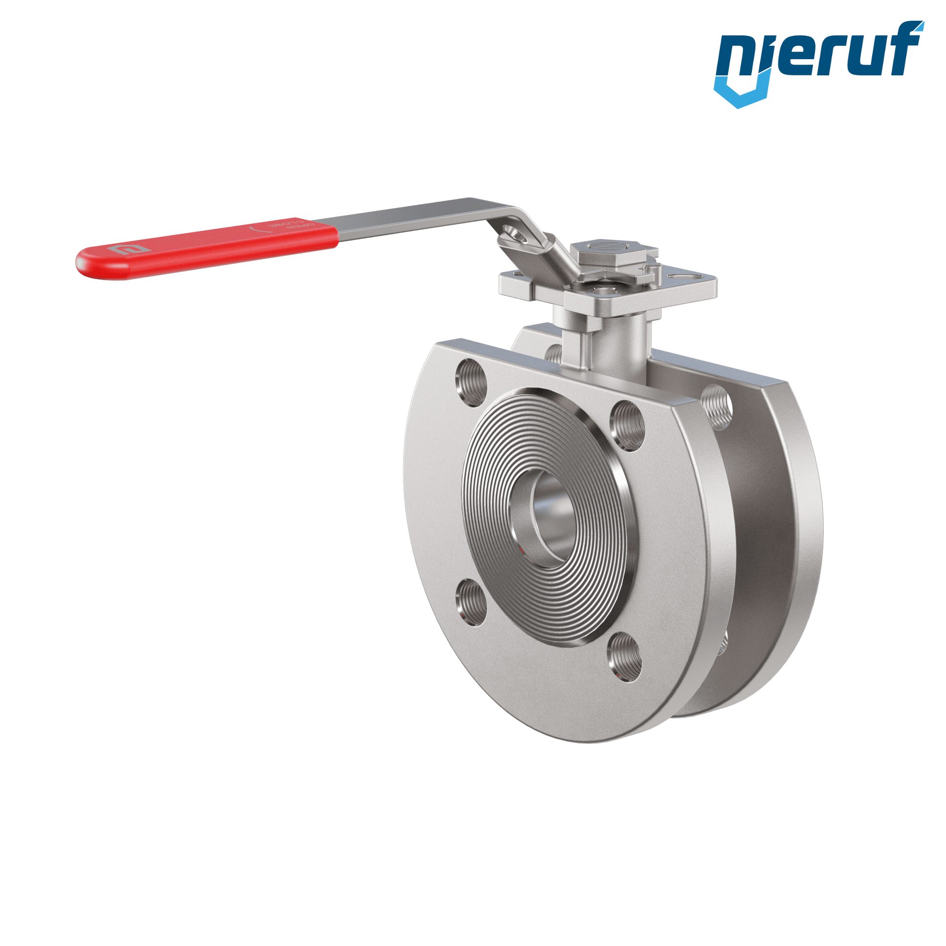 Kompakt-Kugelhahn aus Edelstahl mit Edelstahl Hebel und Kugel. Flansche mit metrischer durchgehender Bohrung. Zum Absperren von Systemen.