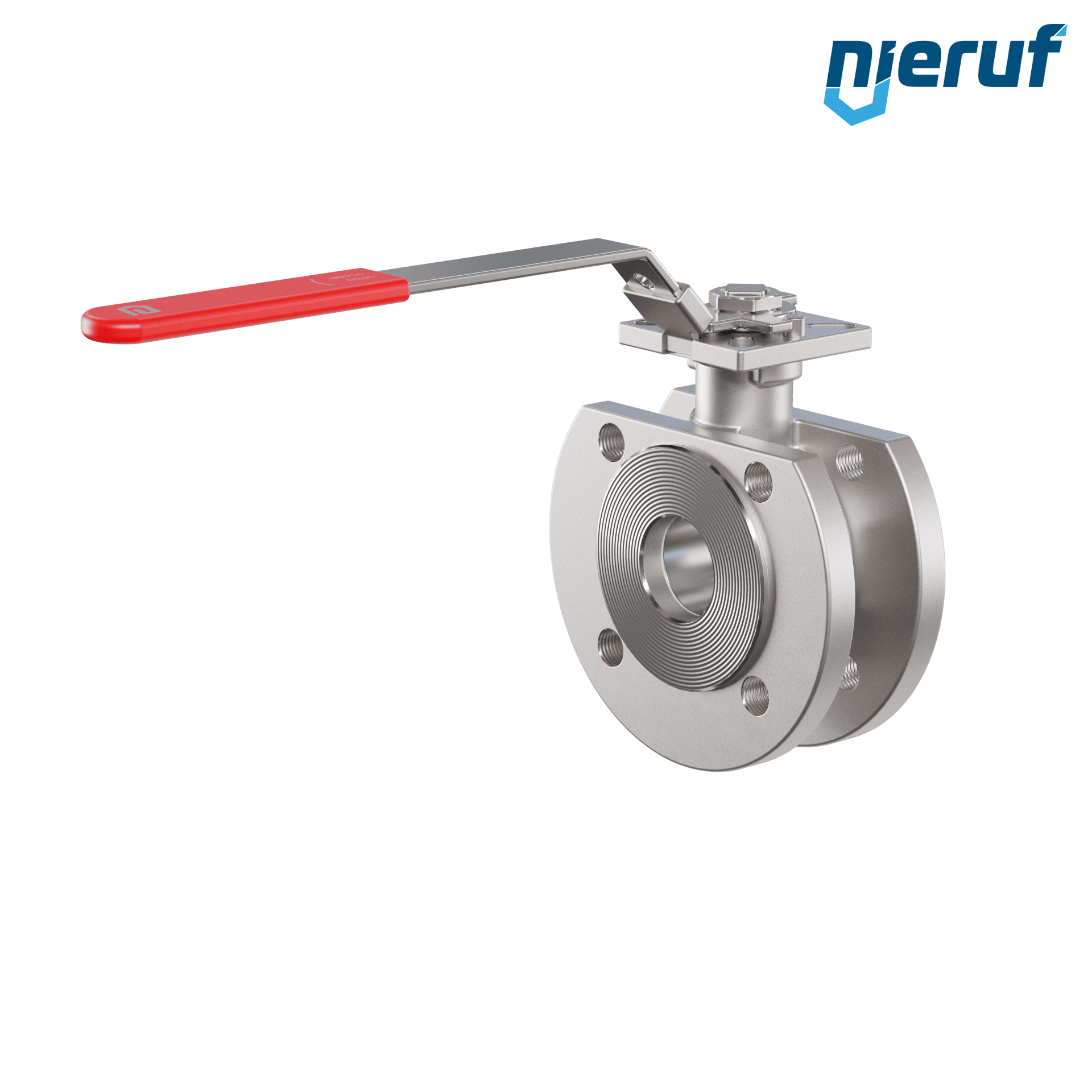 Kompakt-Kugelhahn aus Edelstahl mit Edelstahl Hebel und Kugel. Flansche mit metrischer durchgehender Bohrung. Zum Absperren von Systemen.