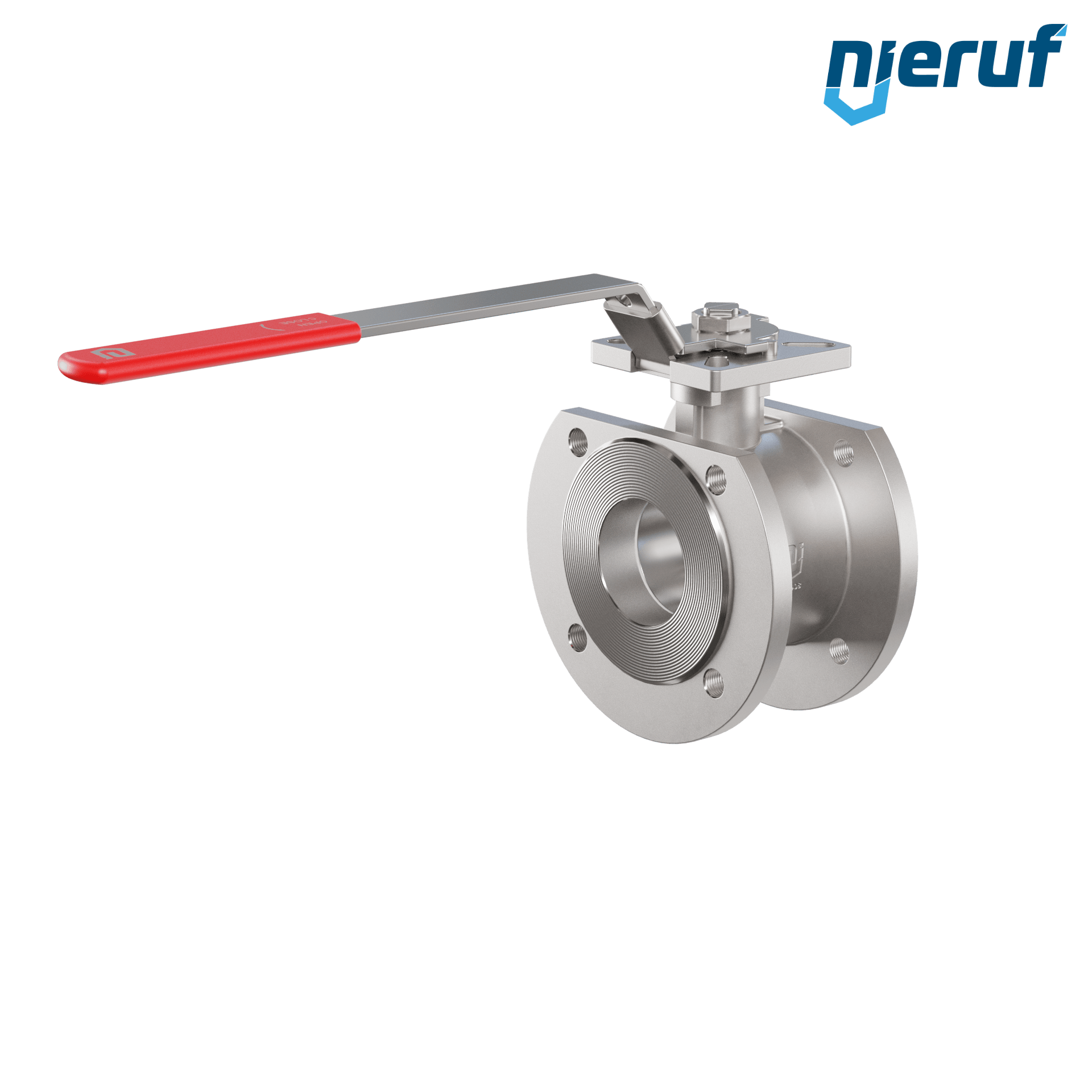 Kompakt-Kugelhahn aus Edelstahl mit Edelstahl Hebel und Kugel. Flansche mit metrischer durchgehender Bohrung. Zum Absperren von Systemen.