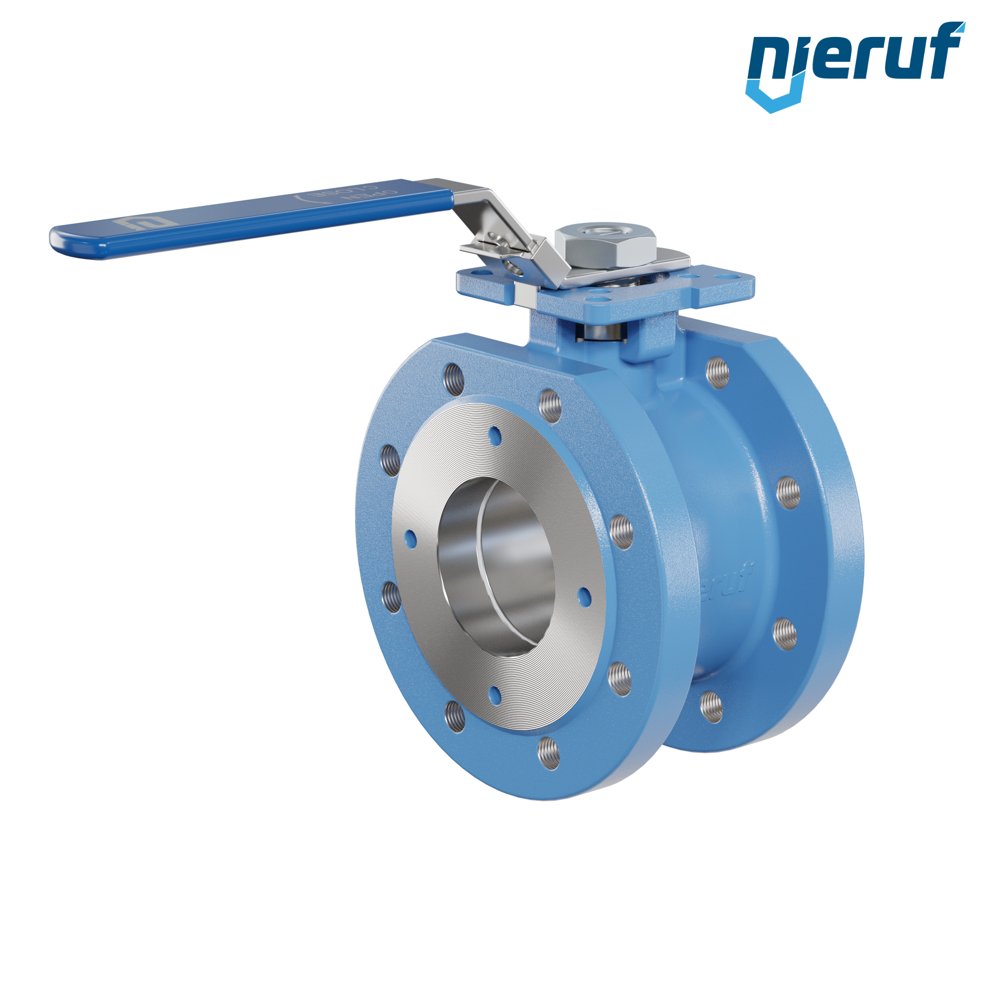 | Antrieb | Handhebel aus Edelstahl 1.4310 mit blauer Ummantelung |