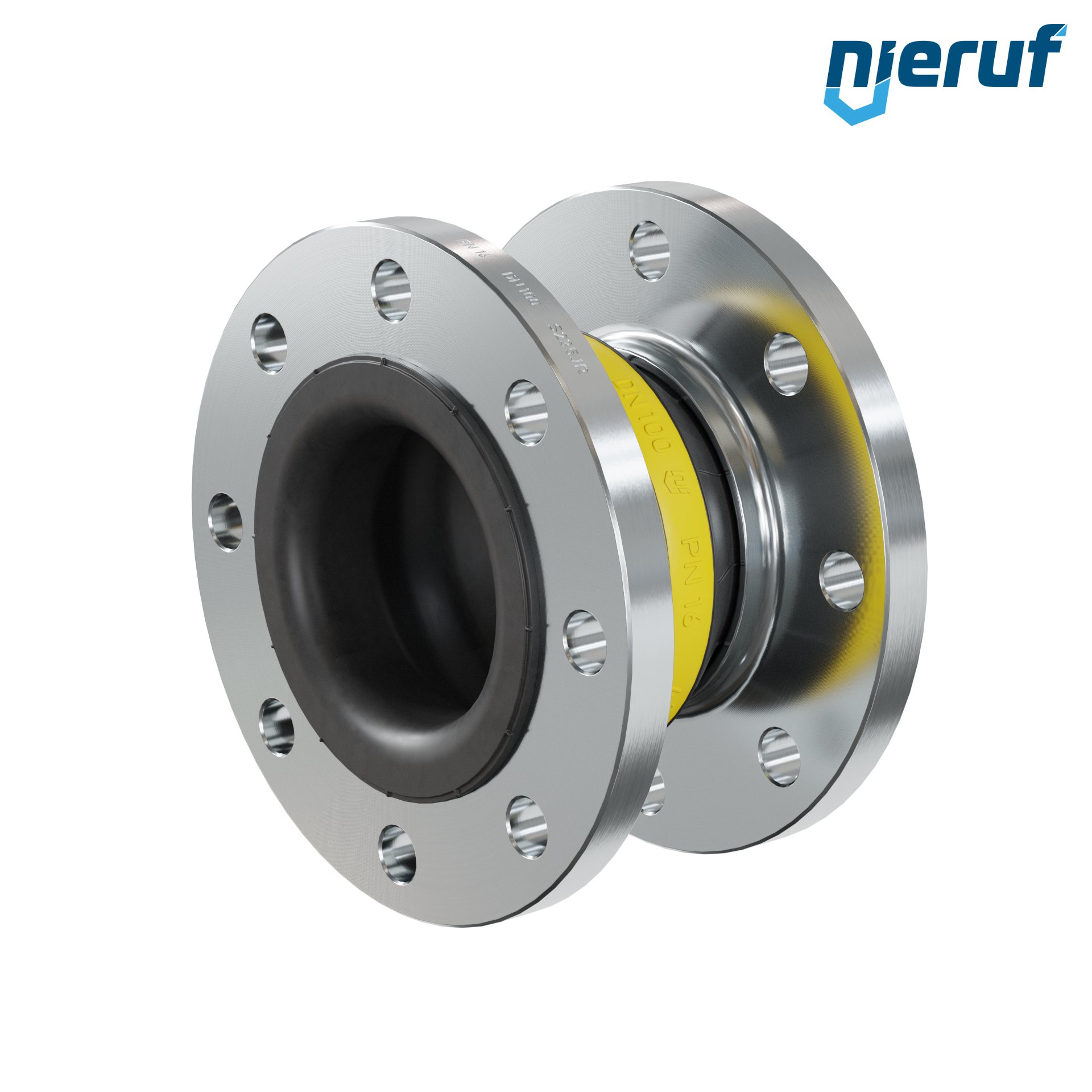 Hochwertiger Gummikompensator mit NBR Dichtung und Stahlflanschen. Der Typ kann um eine PTFE Auskleidung, Vakuumstützringe und andere Optionen auf Anfrage erweitert werden.