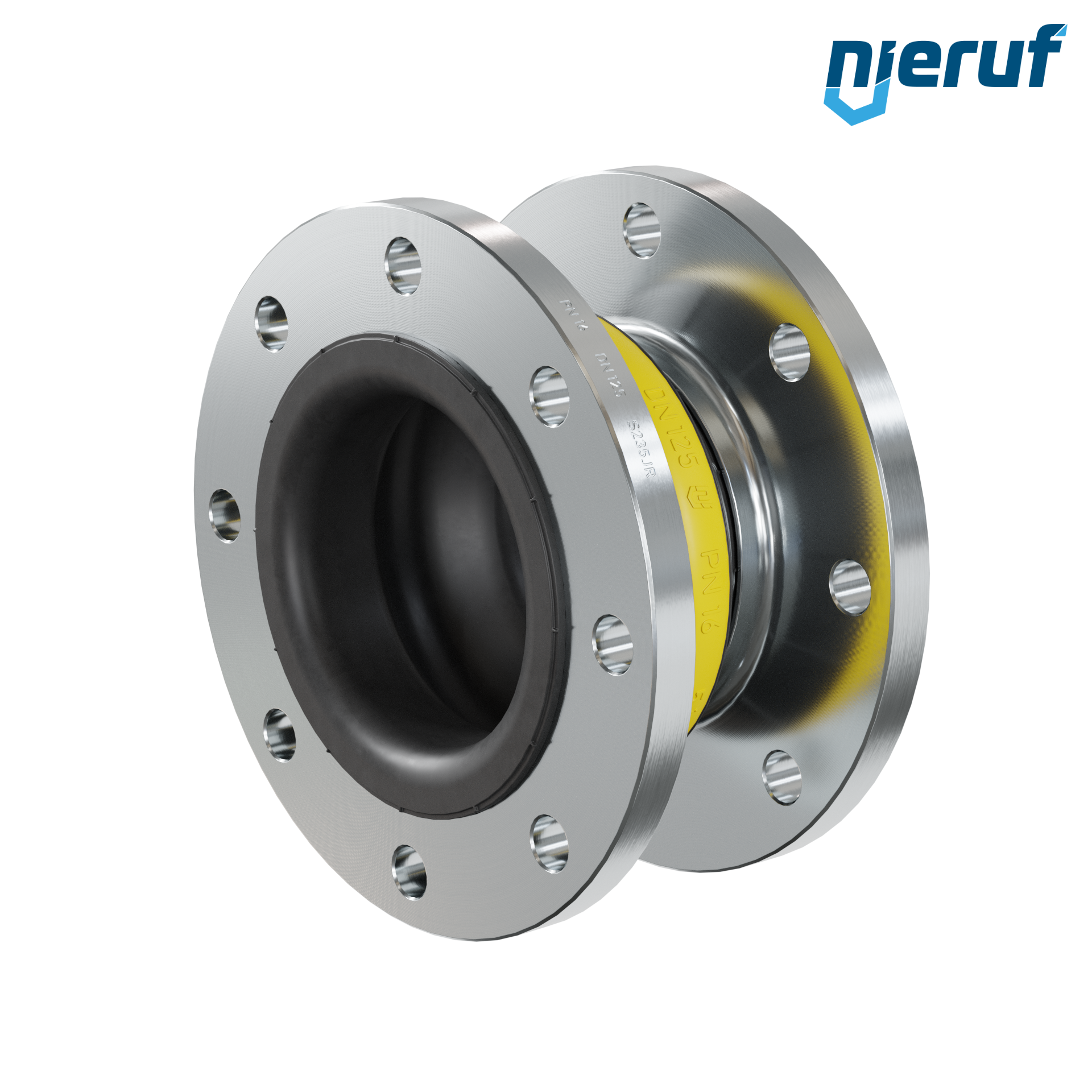 Hochwertiger Gummikompensator mit NBR Dichtung und Stahlflanschen. Der Typ kann um eine PTFE Auskleidung, Vakuumstützringe und andere Optionen auf Anfrage erweitert werden.