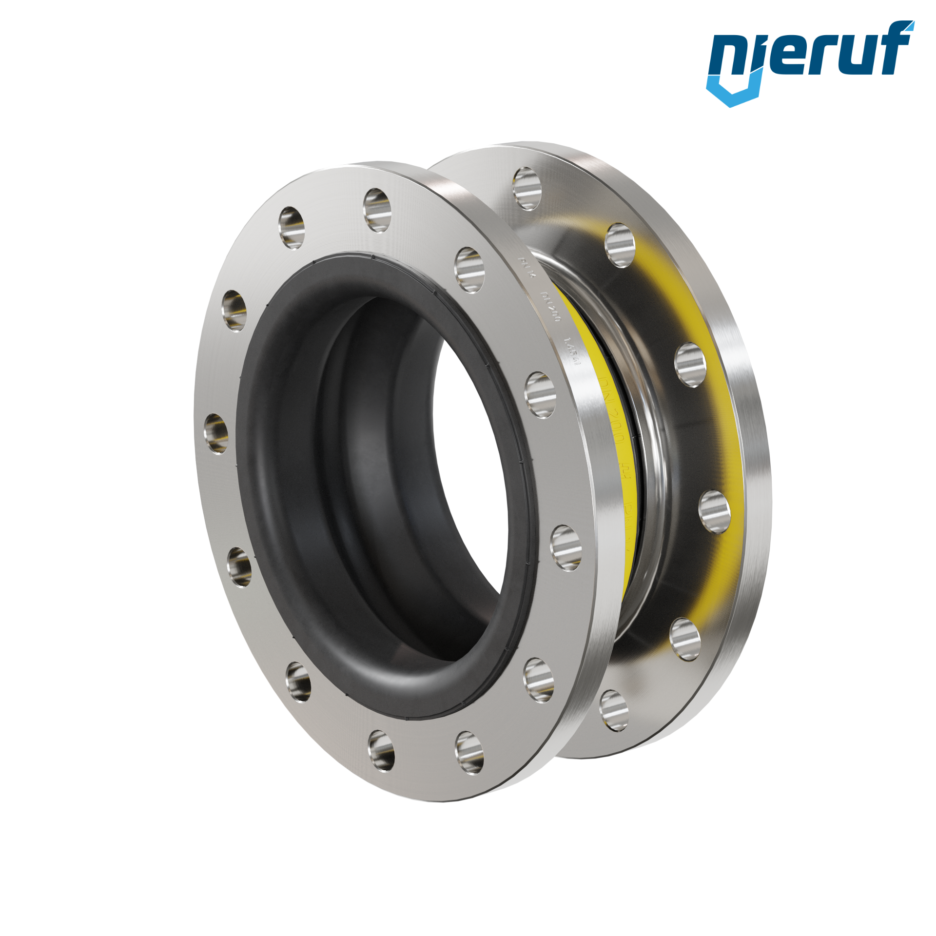 Hochwertiger Gummikompensator mit NBR Dichtung und Edelstahlflanschen. Der Typ kann um eine PTFE Auskleidung, Vakuumstützringe und andere Optionen auf Anfrage erweitert werden.