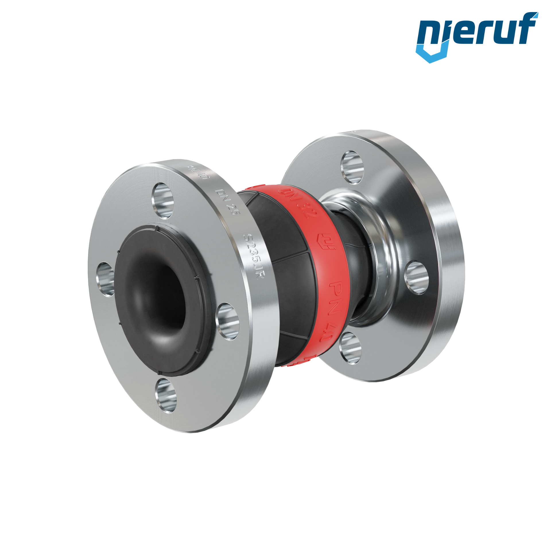 Gummi-Kompensator DN25 mit EPDM-Manschette und Stahlflansch für flüssige, sowie gasförmige Medien (kein Dampf) und Trinkwasser