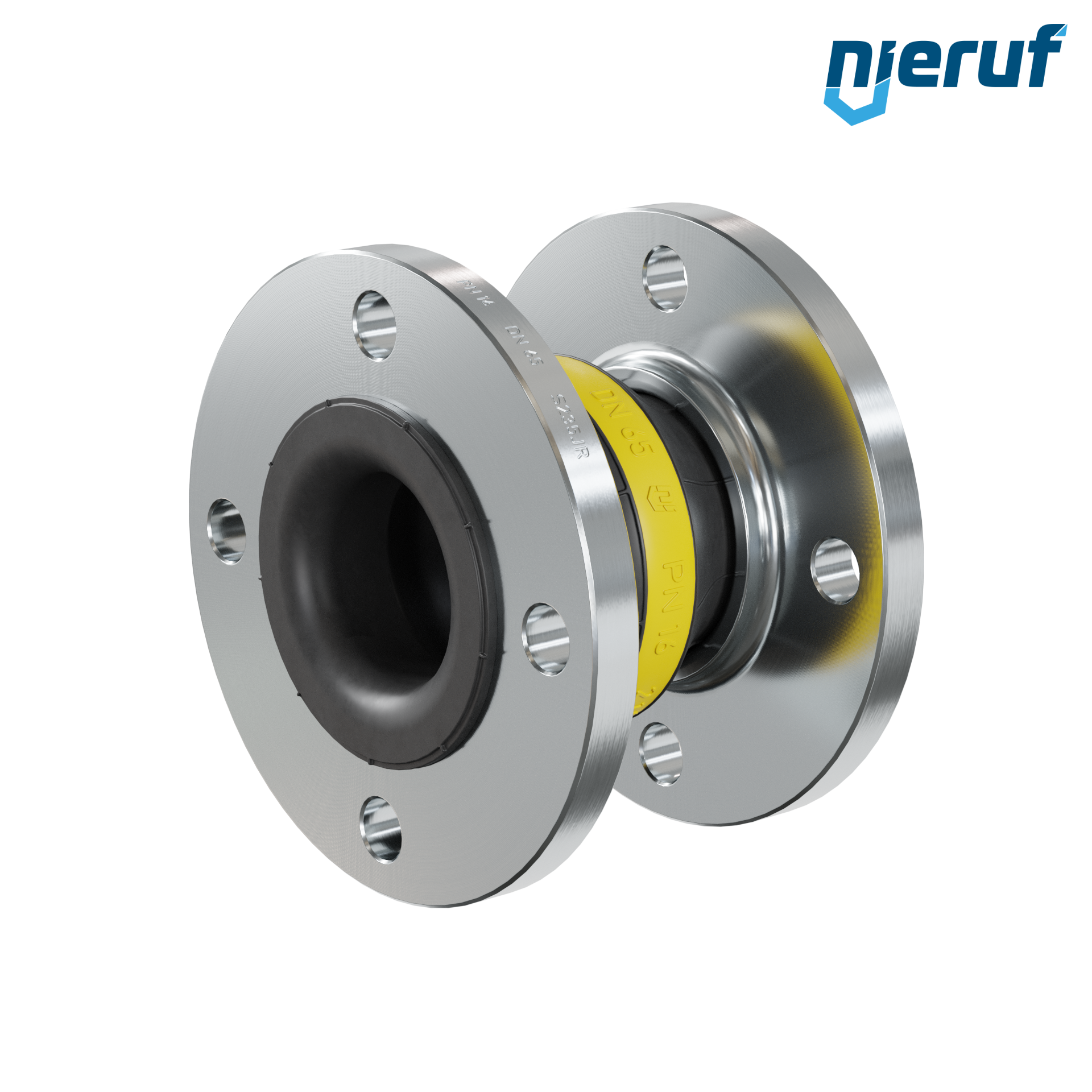 Hochwertiger Gummikompensator mit NBR Dichtung und Stahlflanschen. Der Typ kann um eine PTFE Auskleidung, Vakuumstützringe und andere Optionen auf Anfrage erweitert werden.